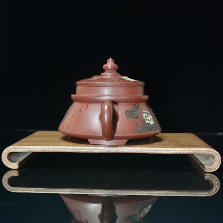 260cc原礦紅皮龍泥繪荷塘清韻寶塔茶壺POT8412