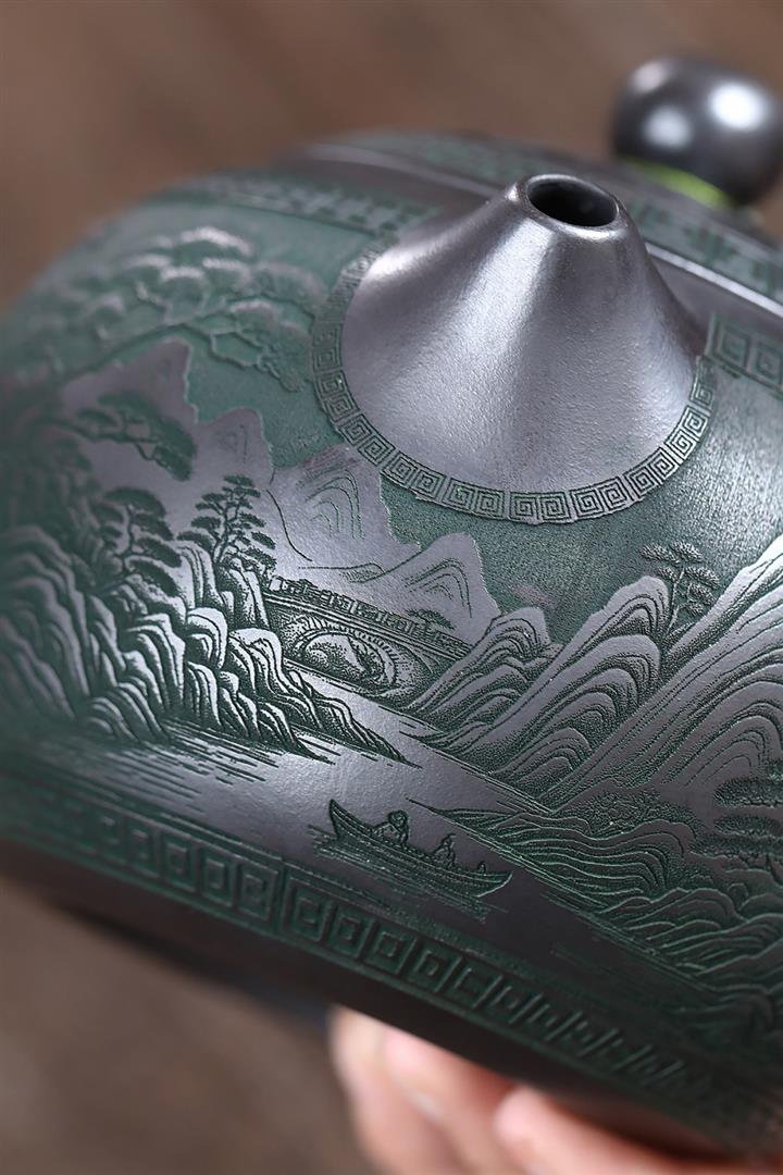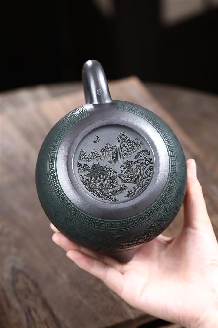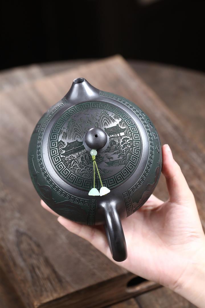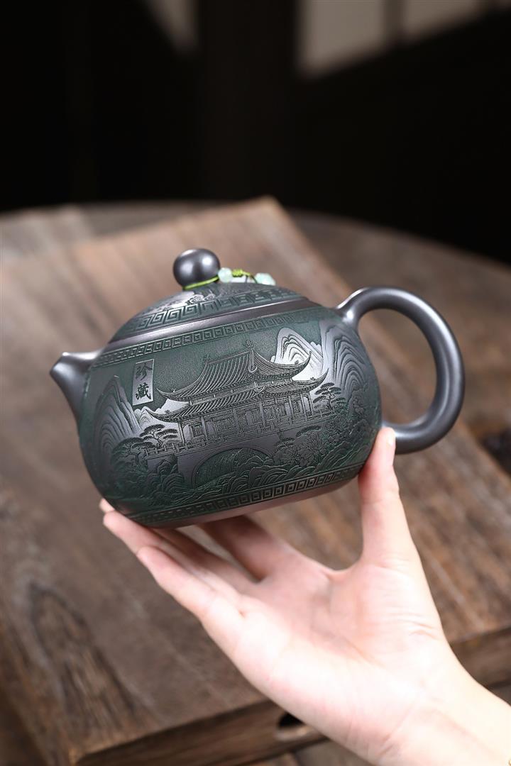【作品介紹】此款壺形線條流暢,壺把,壺嘴,壺身壹氣呵成栩栩如生,是收藏把玩的好壺,泥料色澤古樸典雅,日久使用,漸露鋒芒,養成變化快,溫潤莊重,用其泡茶,使用的年代久,壺身就溫潤,泡出來的茶湯也就醇郁芳馨。