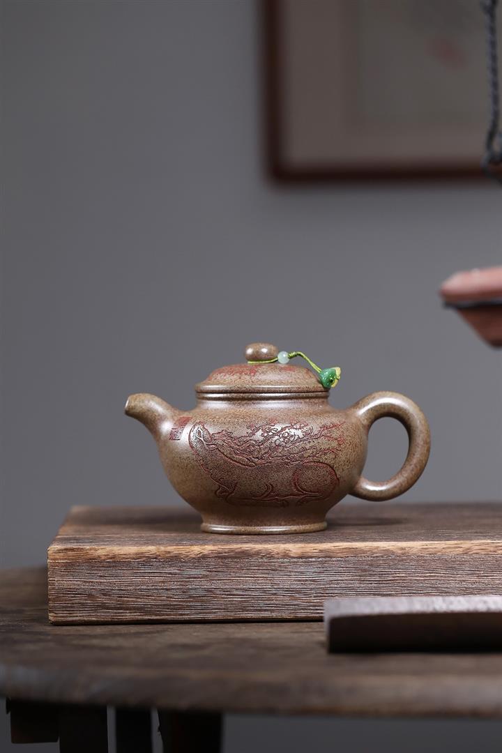420cc原礦沈香泥柴燒墨龍逸駿茶壺POT8432