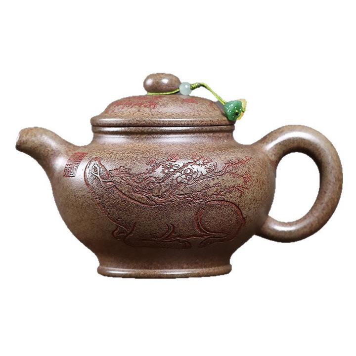 410cc原礦紫玉金砂純手工太平有象汲直茶壺POT8446
