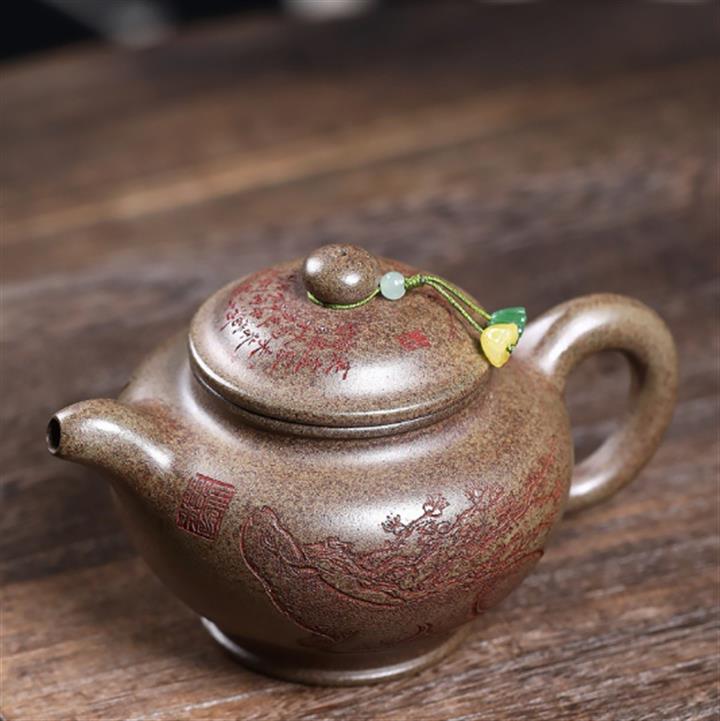 150cc原礦紫泥純手工描金婉玉茶壺POT8447