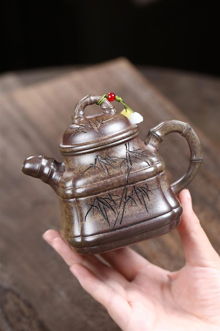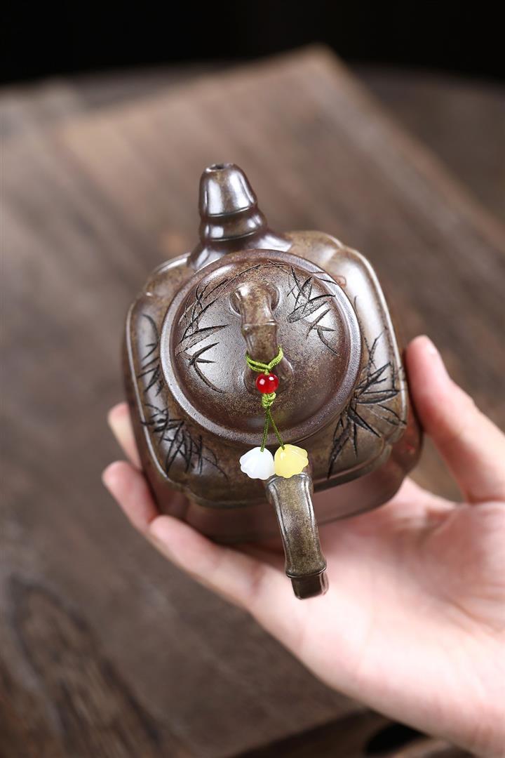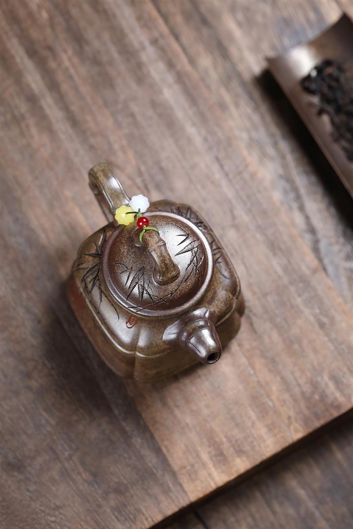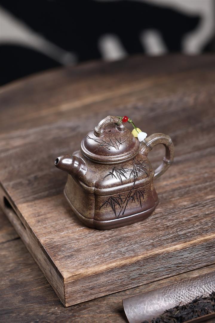 150cc原礦段泥四方雲竹薄胎茶壺POT8448