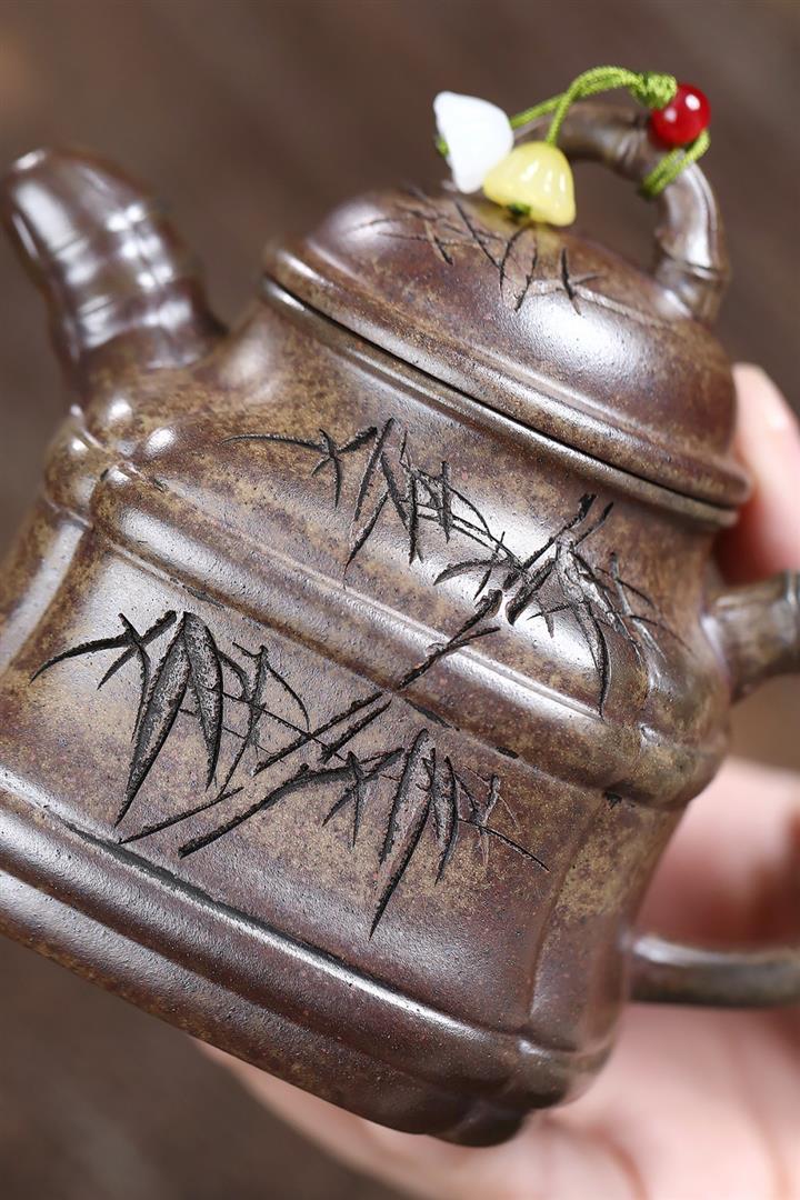 270cc原礦沈香泥柴燒君子如竹茶壺POT8434