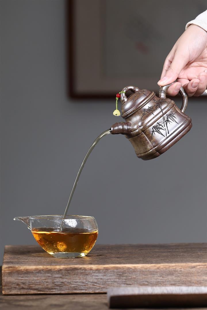 300cc原礦柴燒沈香泥沈煙翠影竹鼎壺POT8430