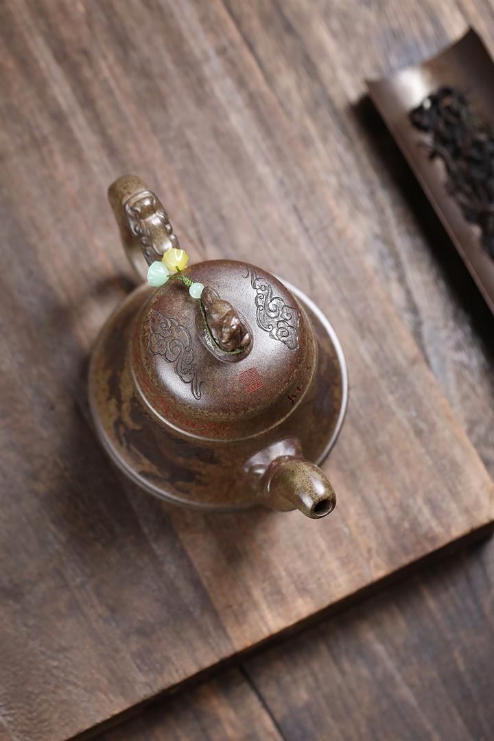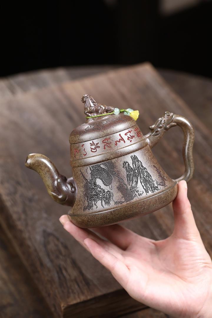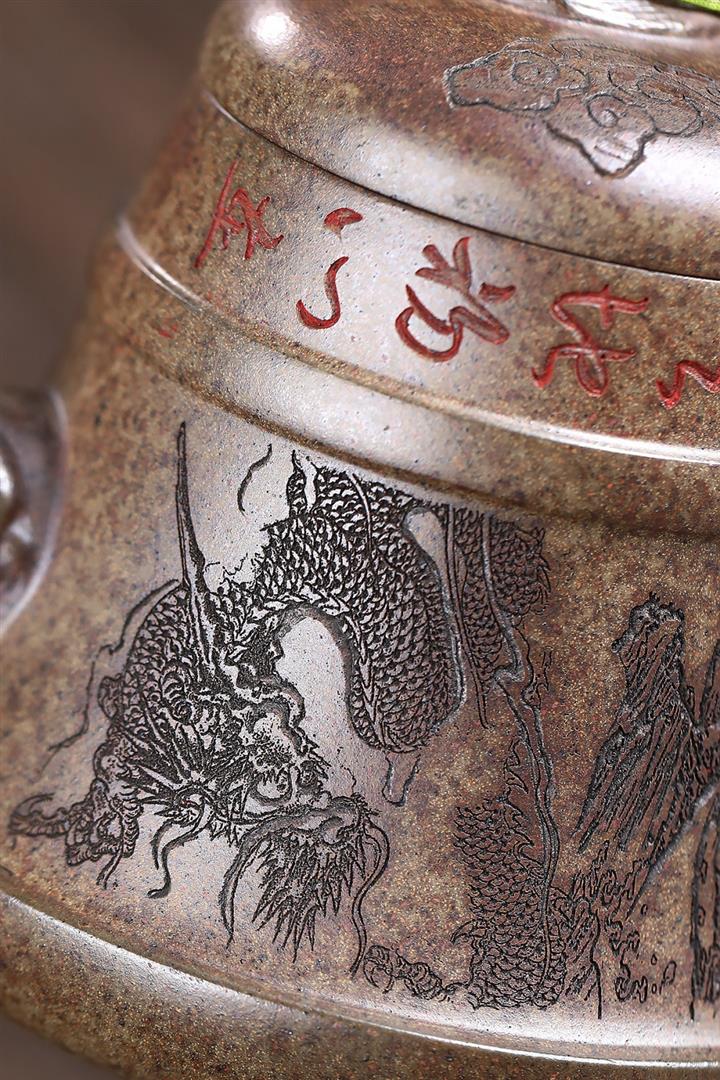 420cc原礦沈香泥柴燒墨龍逸駿茶壺POT8432