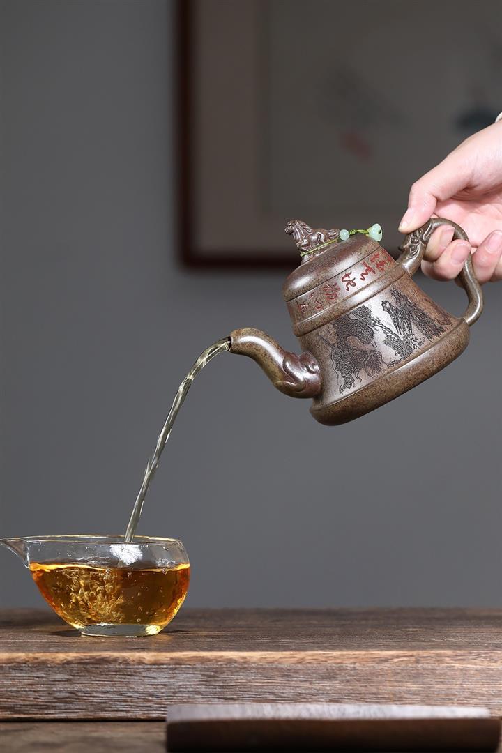 410cc原礦紫玉金砂純手工太平有象汲直茶壺POT8446