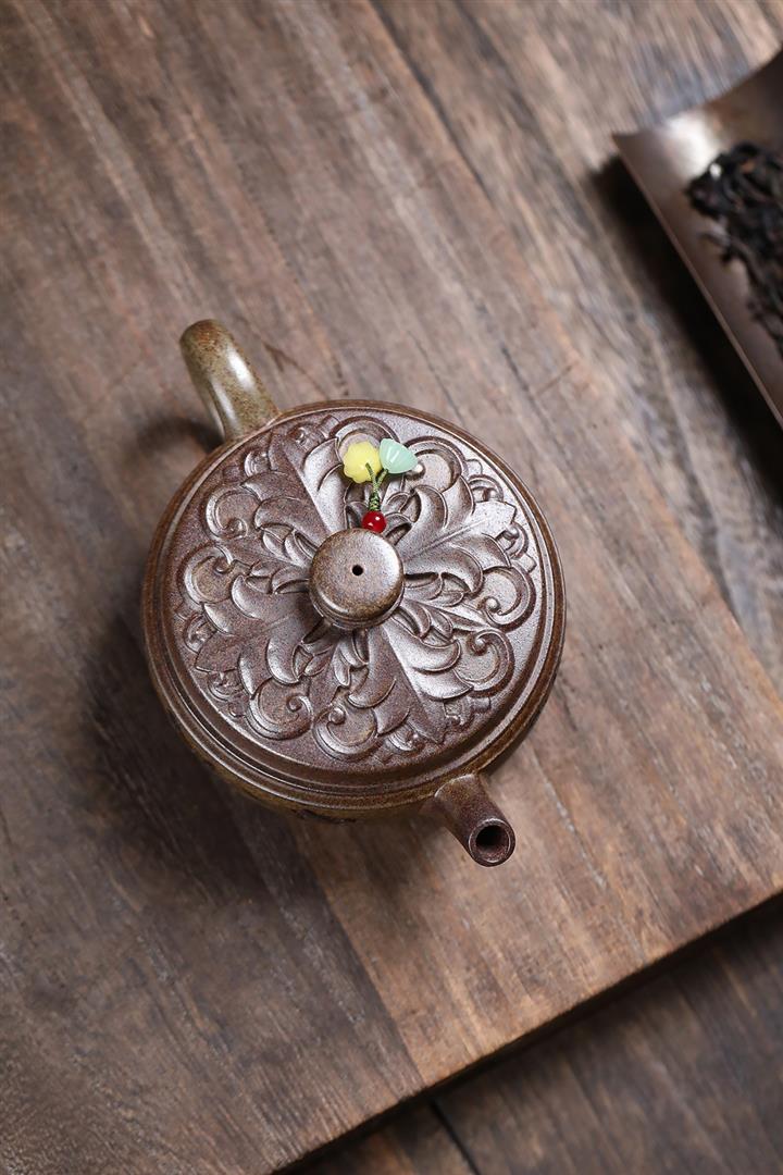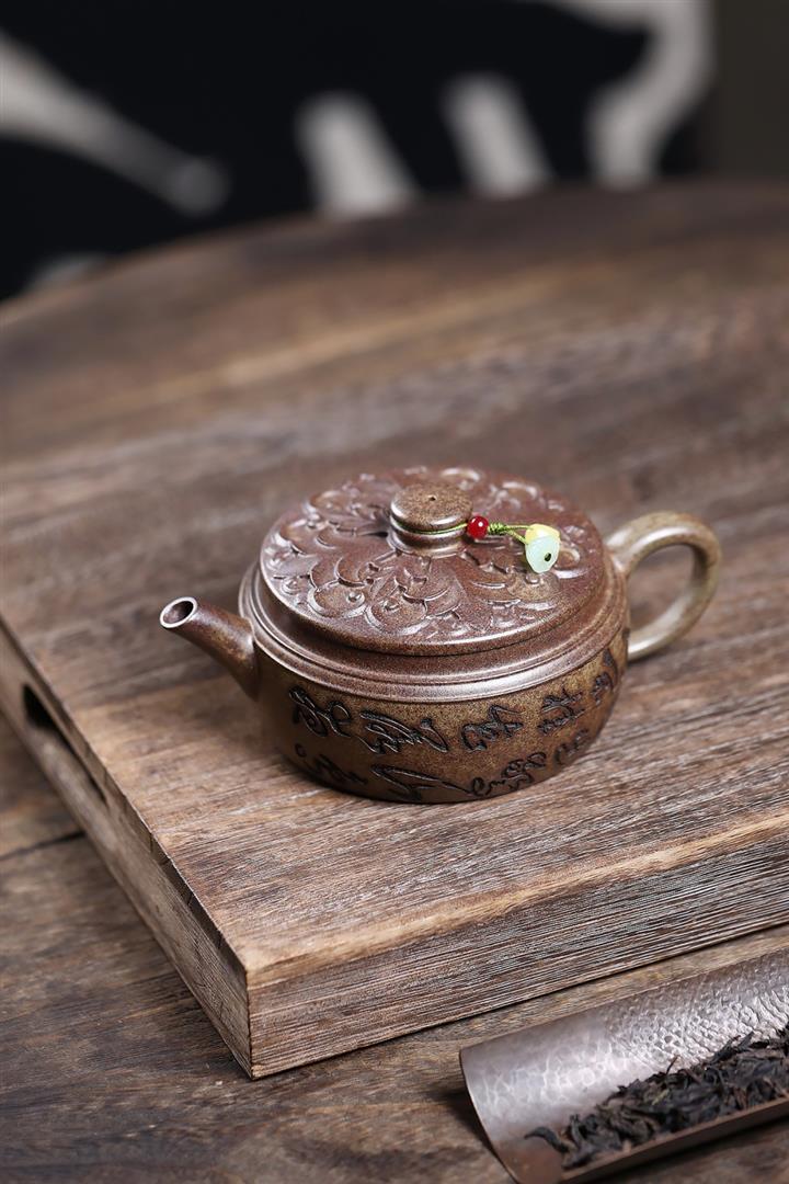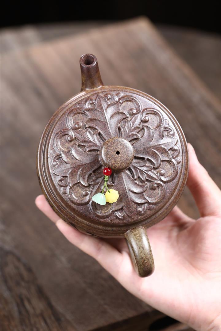 410cc原礦紫玉金砂純手工太平有象汲直茶壺POT8446