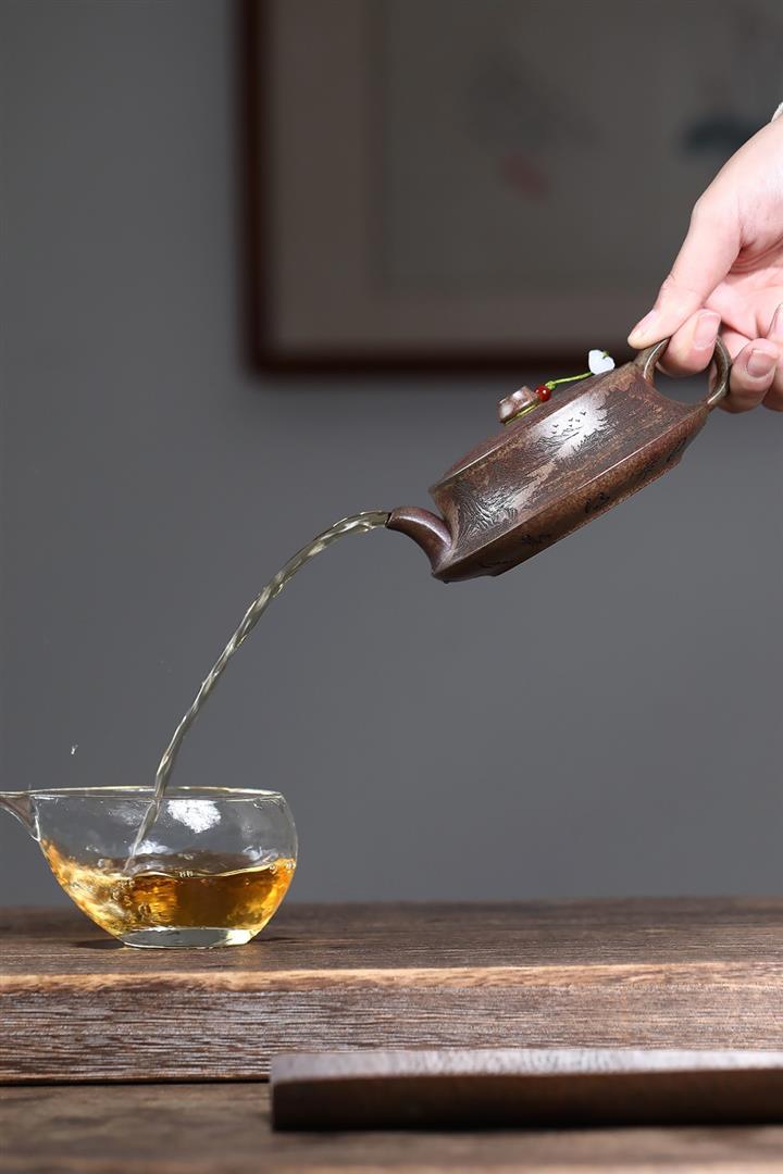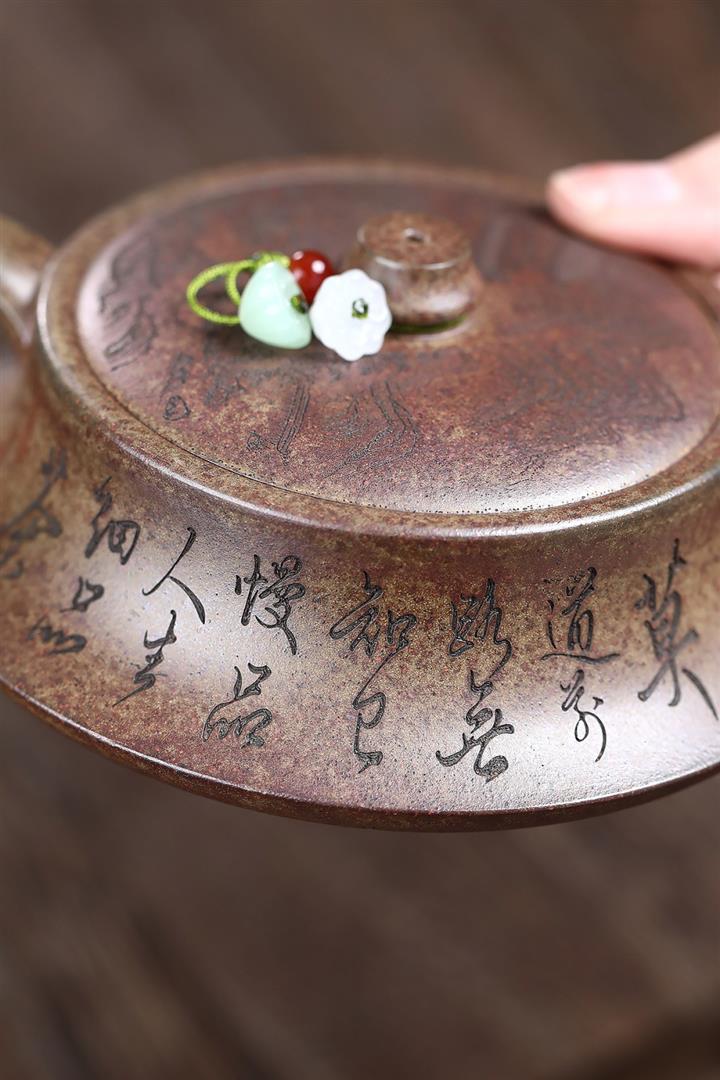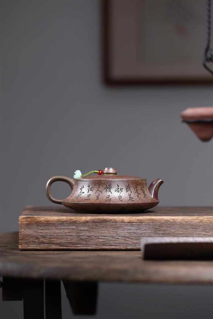 【泥料特點】砂土氣重,似淳實農民,日久使用,漸露鋒芒,養成變化,溫潤莊重。紫砂是壹種雙重氣孔結構的多孔性材質,氣孔微細,密度高。用紫砂壺沏茶,不失原味,且香不渙散,得茶之真香真味。紫砂使用越久,壺身色澤越發光亮照人,氣韻溫雅。紫砂壺長久使用器身會因撫摸擦拭,變得越發溫潤光澤。