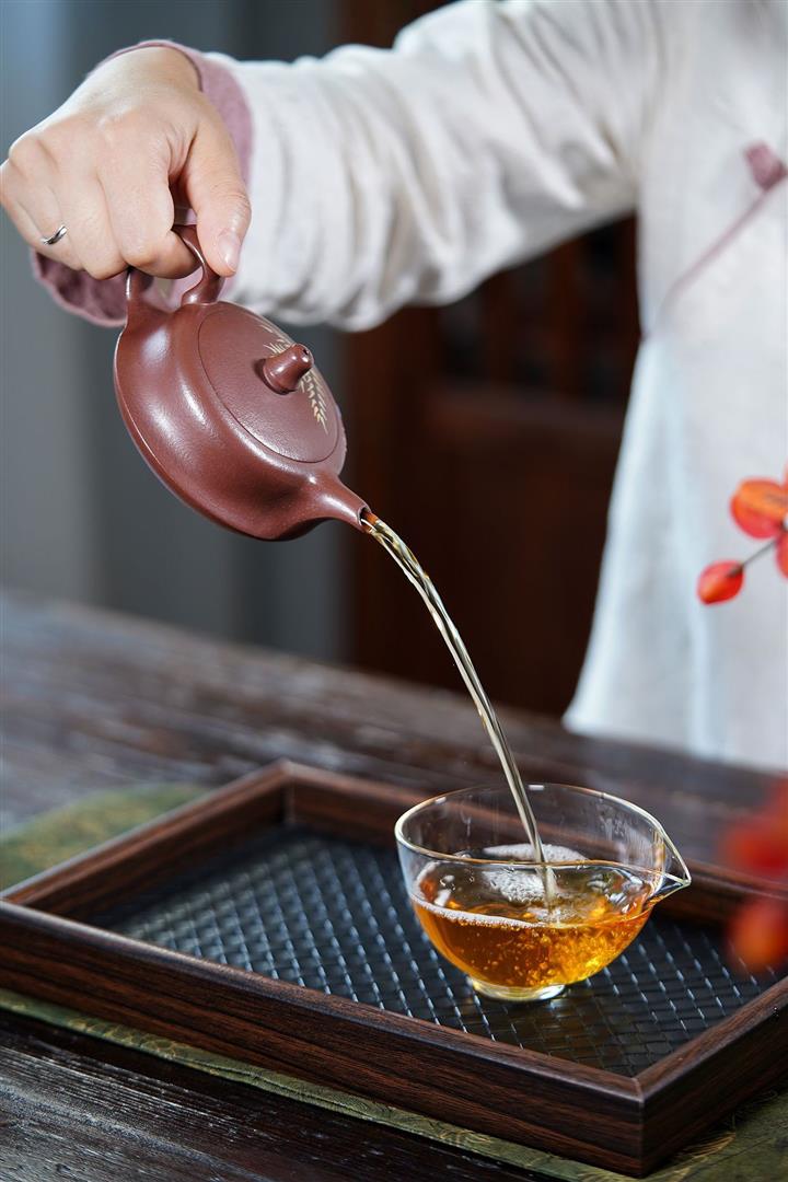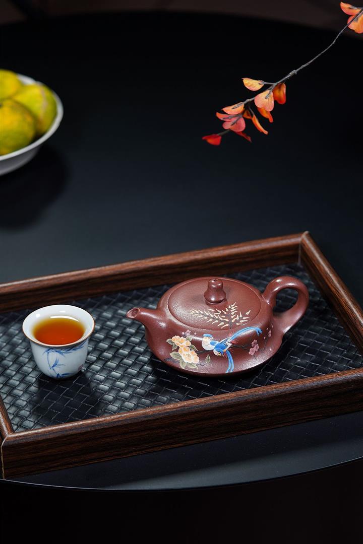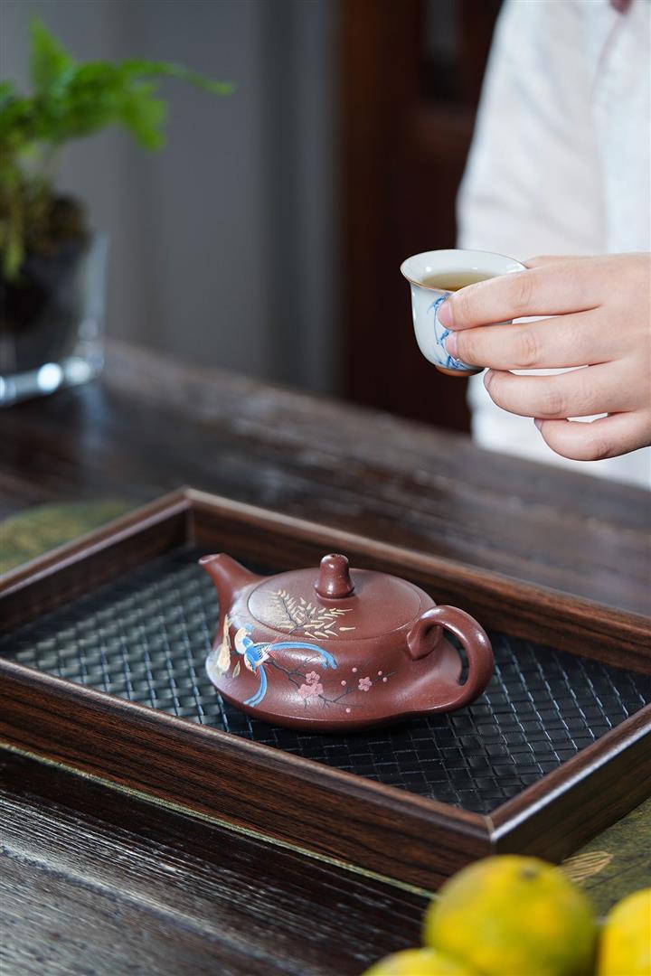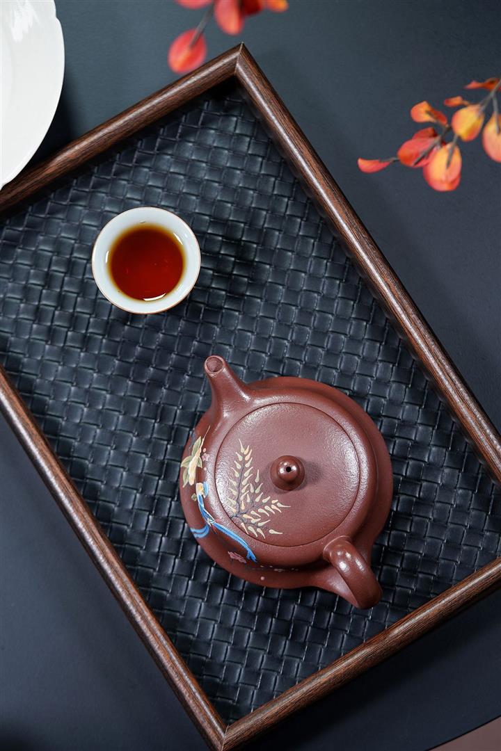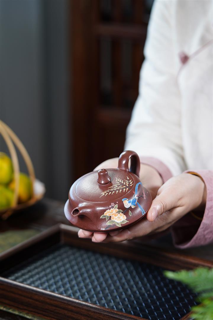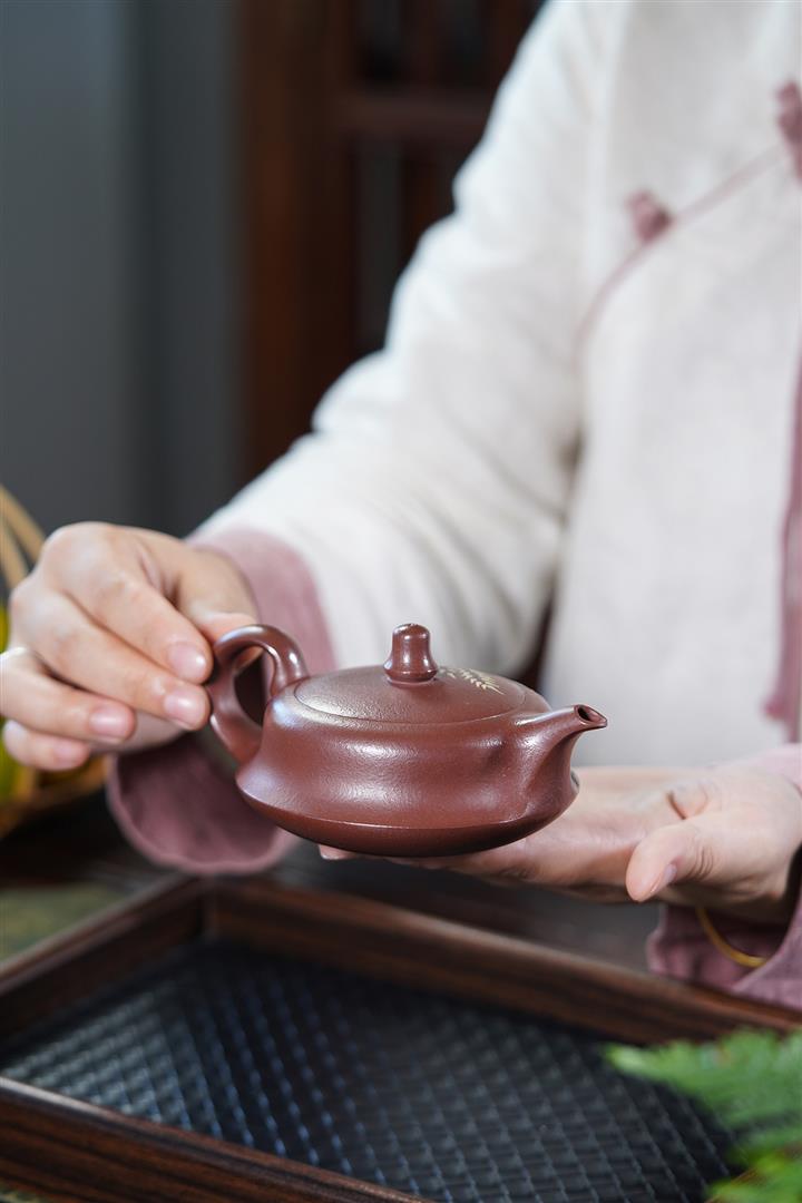 【泥料特點】砂土氣重,似淳實農民,日久使用,漸露鋒芒,養成變化,溫潤莊重。紫砂是壹種雙重氣孔結構的多孔性材質,氣孔微細,密度高。用紫砂壺沏茶,不失原味,且香不渙散,得茶之真香真味。紫砂使用越久,壺身色澤越發光亮照人,氣韻溫雅。紫砂壺長久使用器身會因撫摸擦拭,變得越發溫潤光澤。