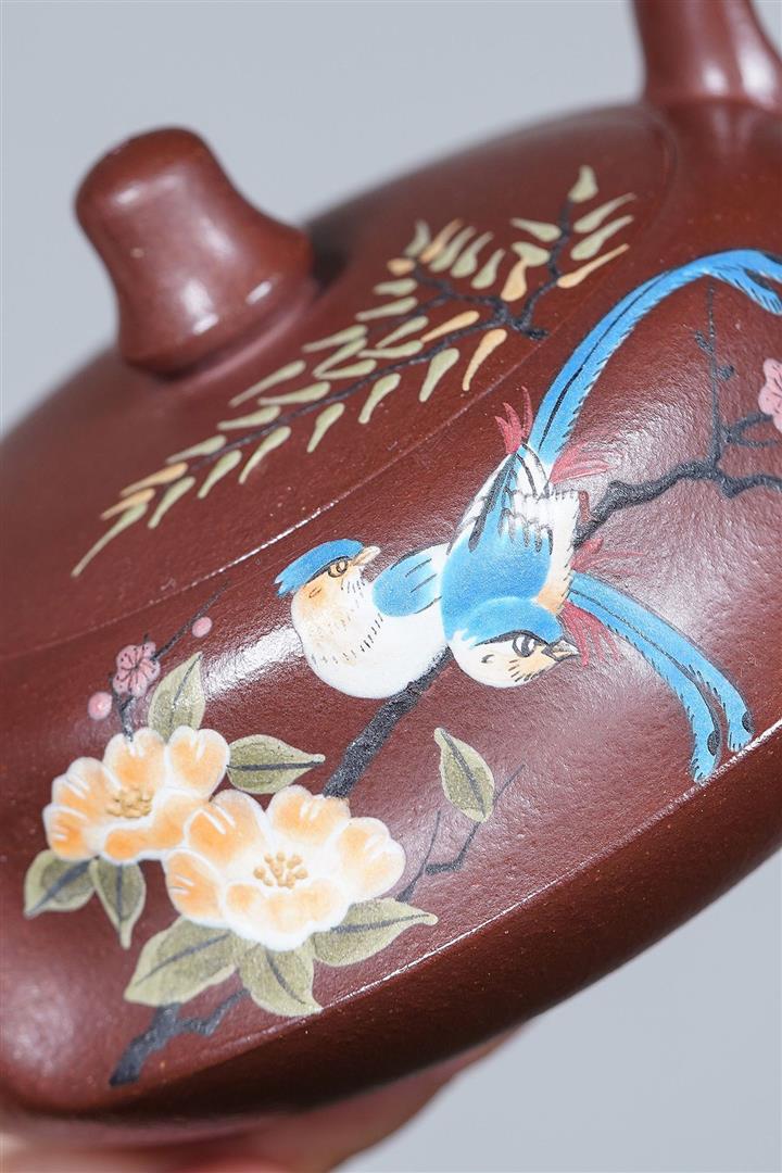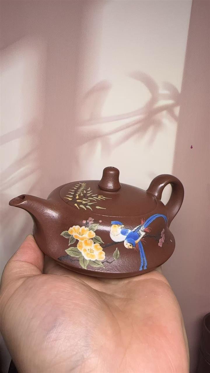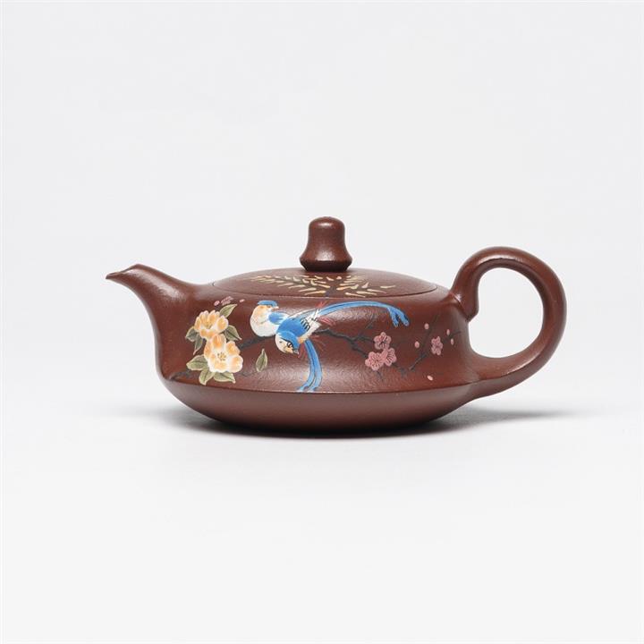 200cc原礦紫泥手制彩繪曲壺茶壺POT8438