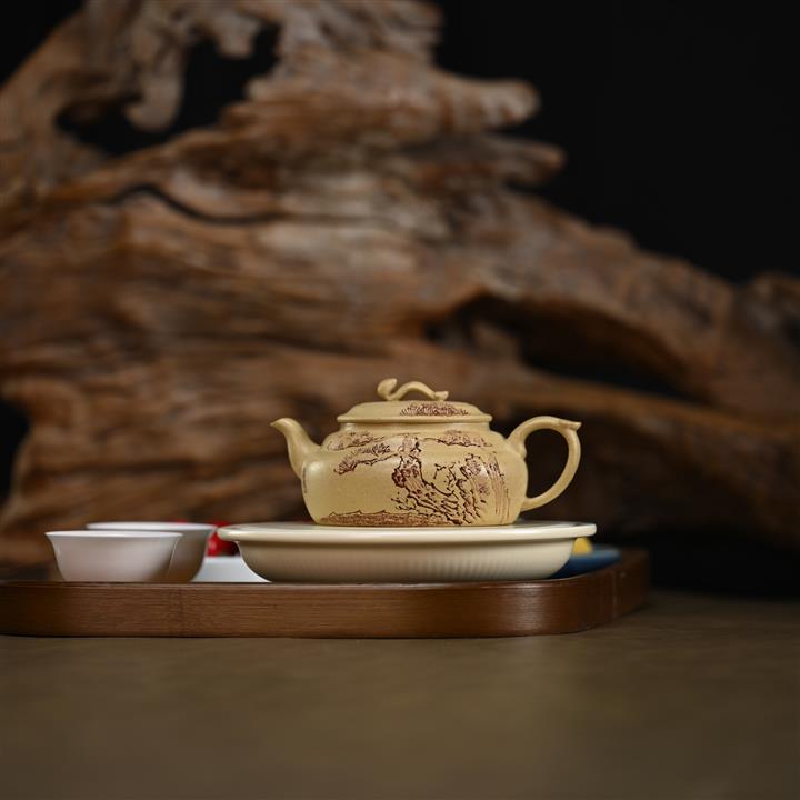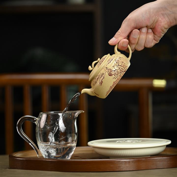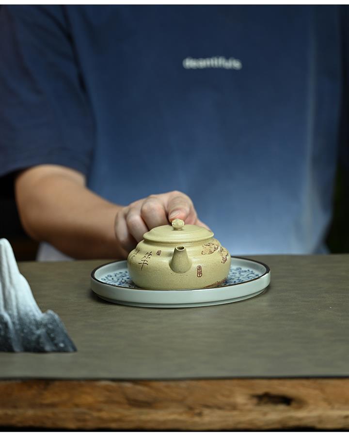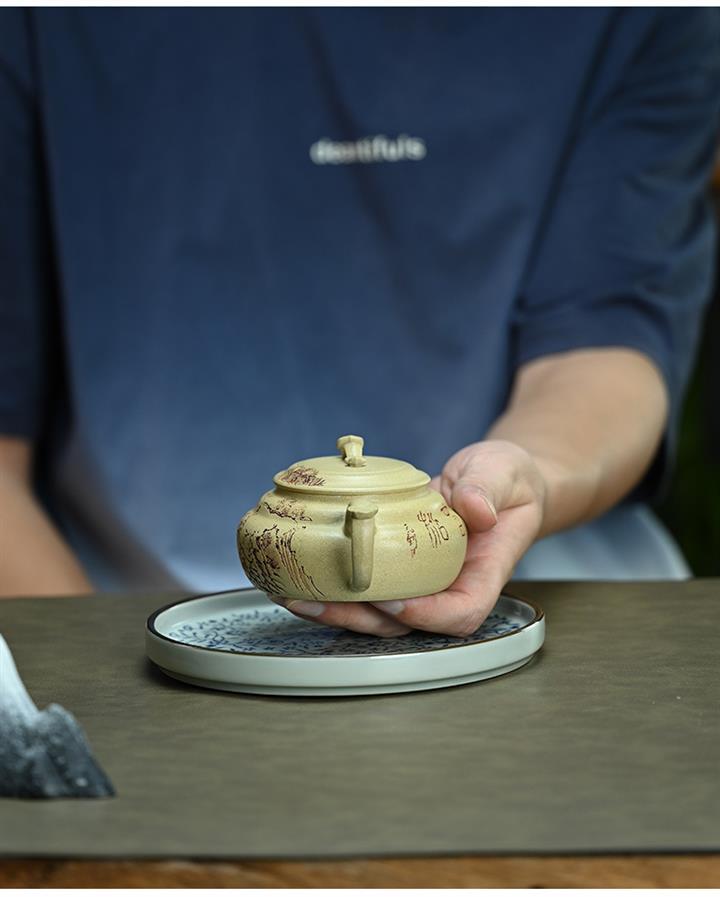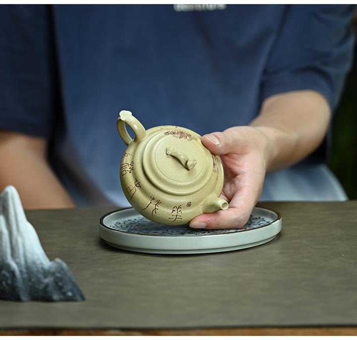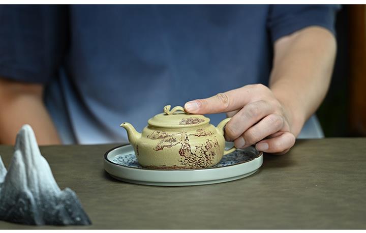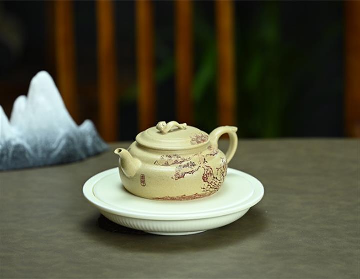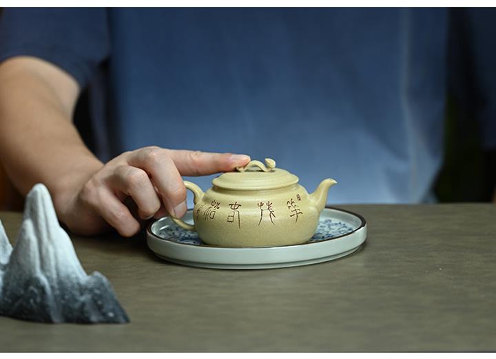 【泥料特點】砂土氣重,似淳實農民,日久使用,漸露鋒芒,養成變化,溫潤莊重。紫砂是壹種雙重氣孔結構的多孔性材質,氣孔微細,密度高。用紫砂壺沏茶,不失原味,且香不渙散,得茶之真香真味。紫砂使用越久,壺身色澤越發光亮照人,氣韻溫雅。紫砂壺長久使用器身會因撫摸擦拭,變得越發溫潤光澤。