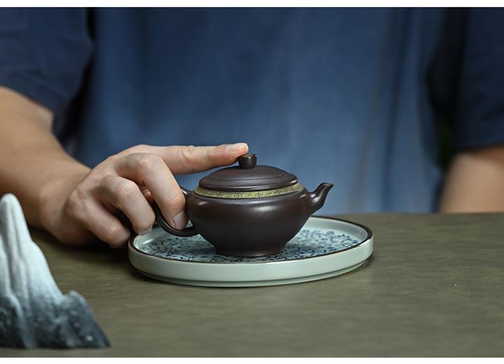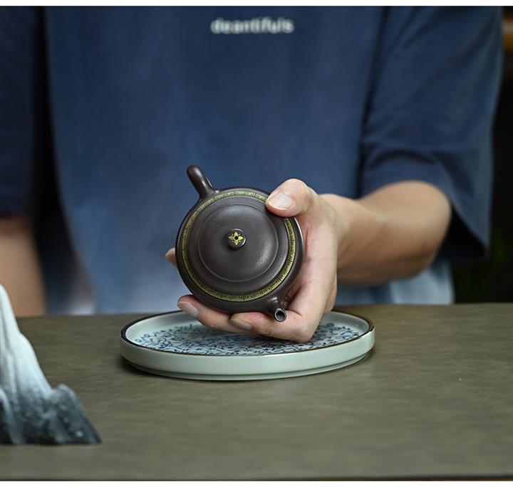 150cc原礦紫泥純手工描金婉玉茶壺POT8447