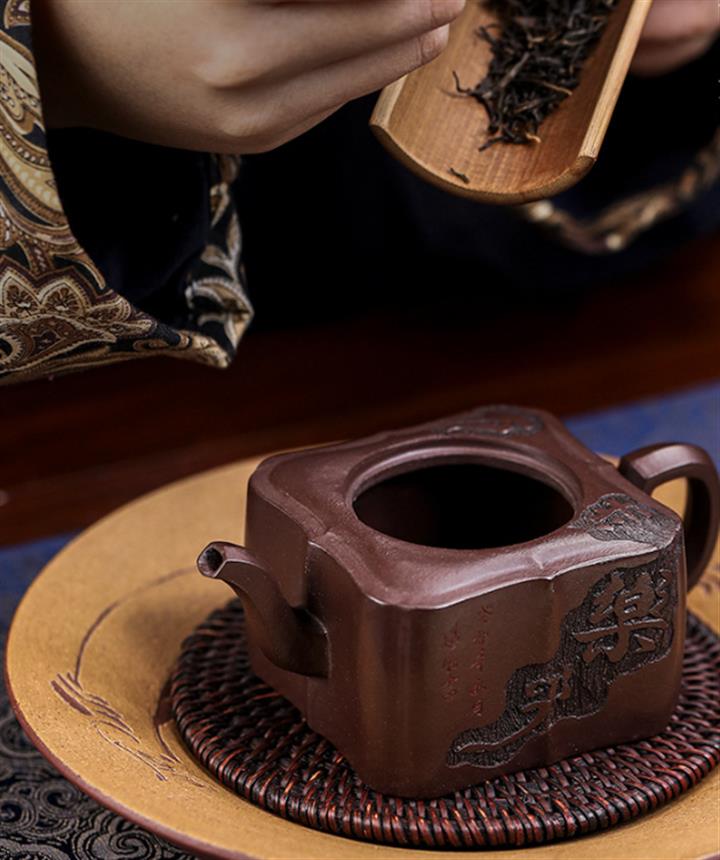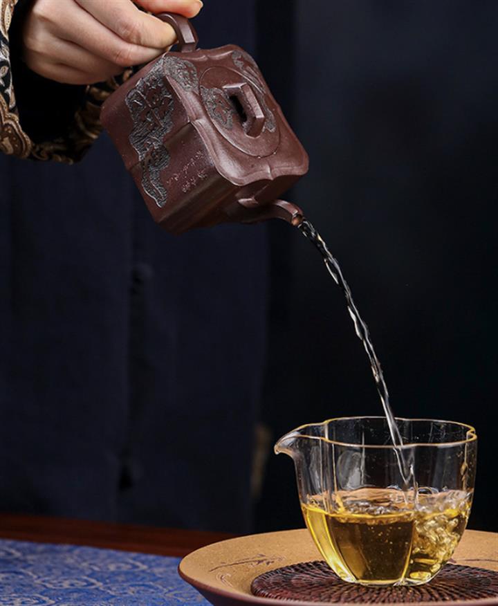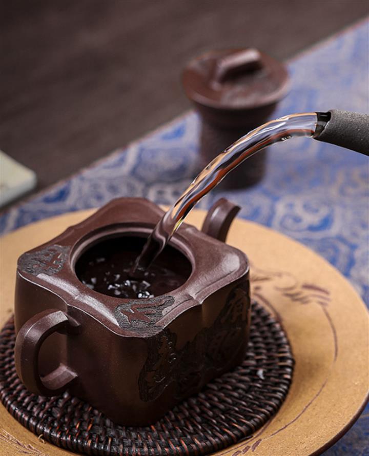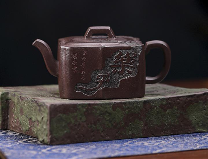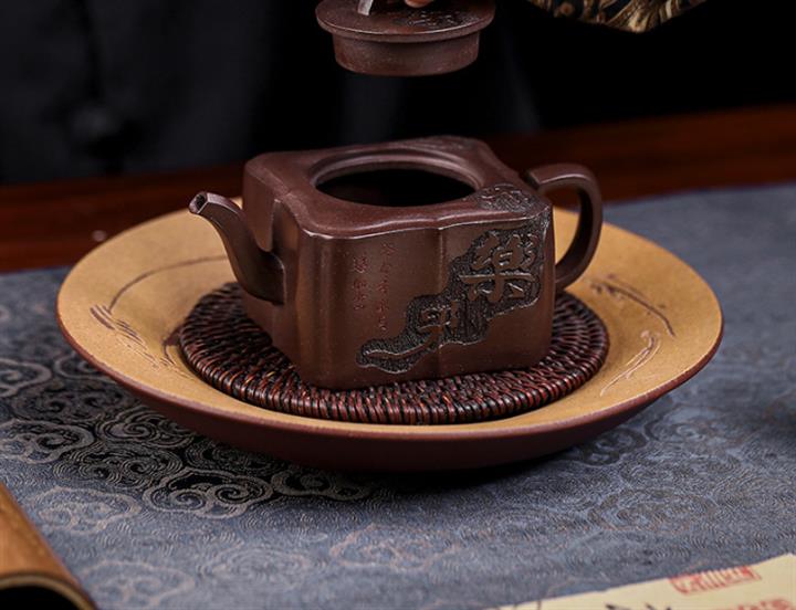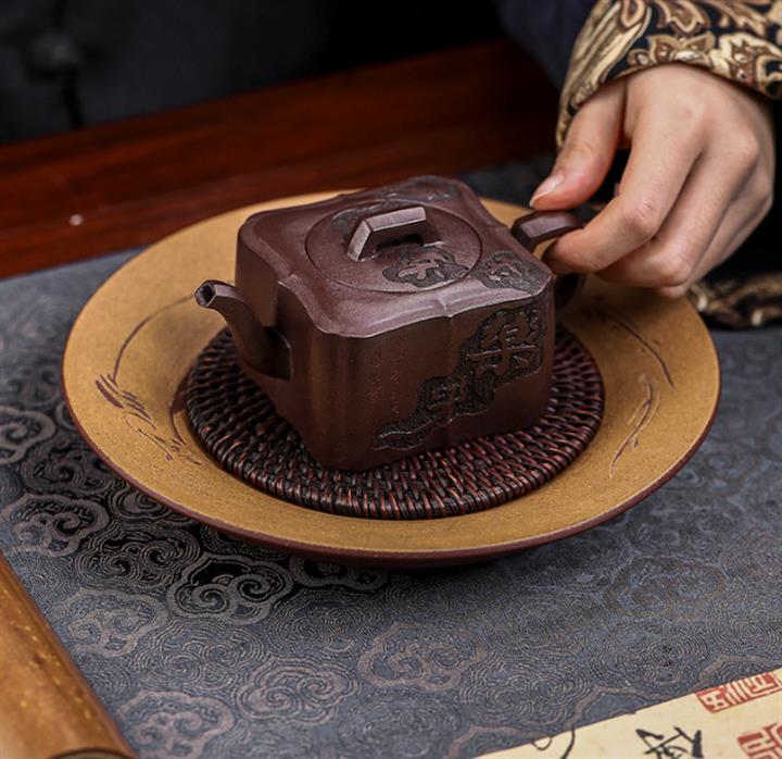 【泥料特點】砂土氣重,似淳實農民,日久使用,漸露鋒芒,養成變化,溫潤莊重。紫砂是壹種雙重氣孔結構的多孔性材質,氣孔微細,密度高。用紫砂壺沏茶,不失原味,且香不渙散,得茶之真香真味。紫砂使用越久,壺身色澤越發光亮照人,氣韻溫雅。紫砂壺長久使用器身會因撫摸擦拭,變得越發溫潤光澤。