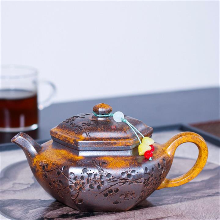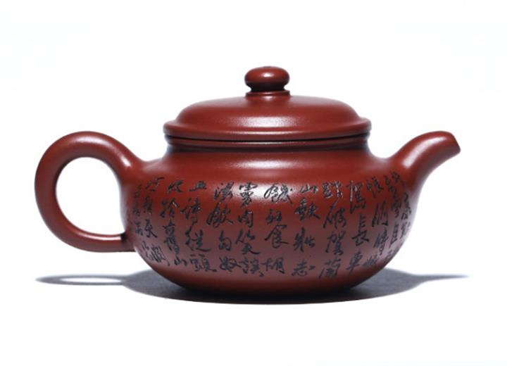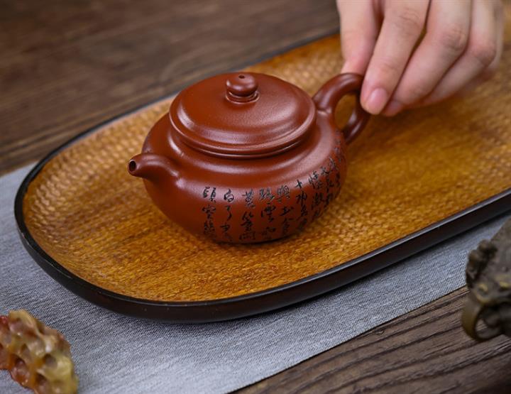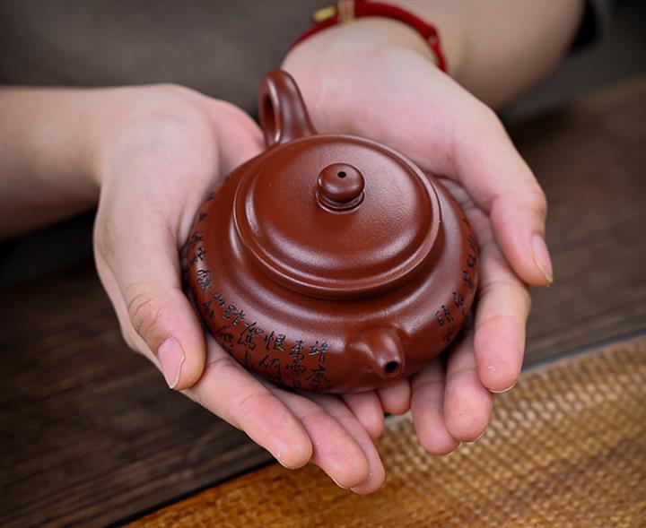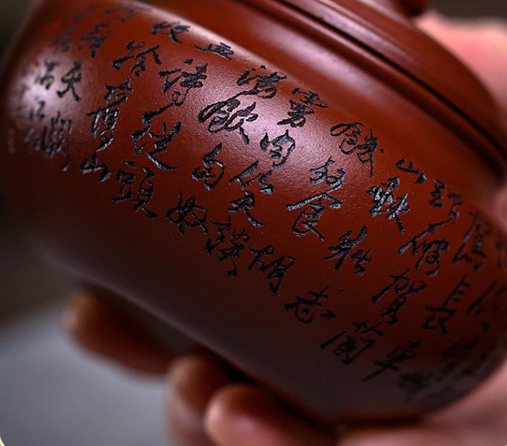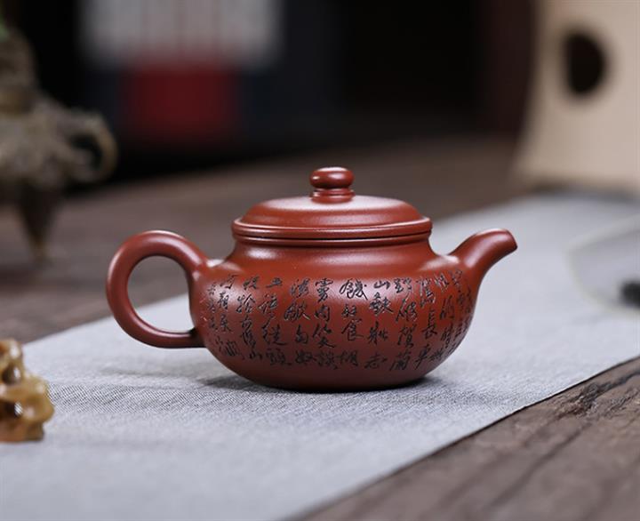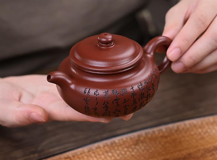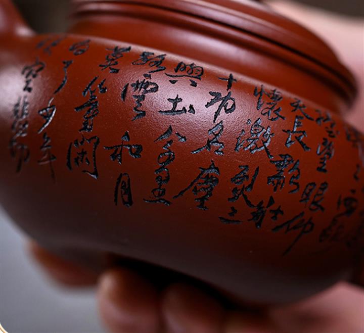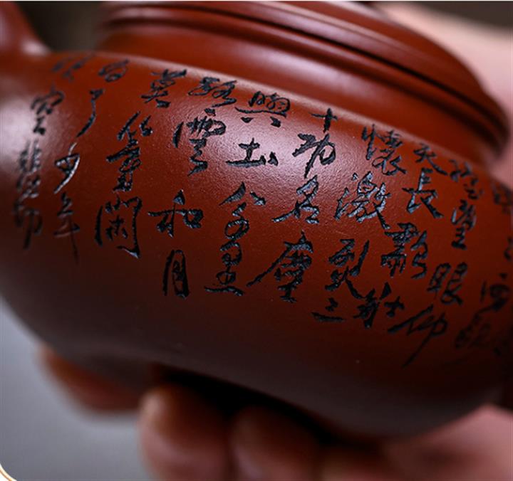 150cc原礦紫泥手工刻繪八方來財茶壺POT8465