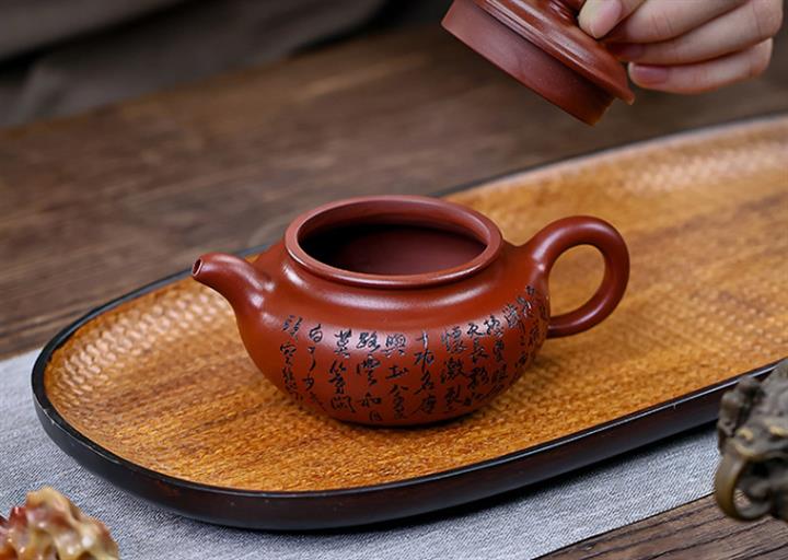 【泥料特點】砂土氣重,似淳實農民,日久使用,漸露鋒芒,養成變化,溫潤莊重。紫砂是壹種雙重氣孔結構的多孔性材質,氣孔微細,密度高。用紫砂壺沏茶,不失原味,且香不渙散,得茶之真香真味。紫砂使用越久,壺身色澤越發光亮照人,氣韻溫雅。紫砂壺長久使用器身會因撫摸擦拭,變得越發溫潤光澤。