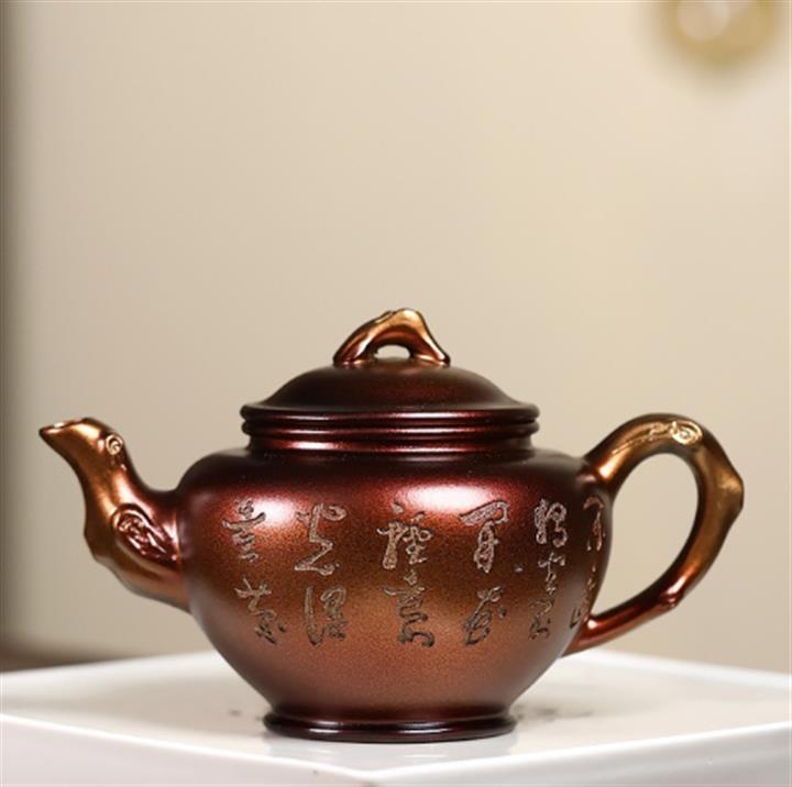 200cc原礦紫朱泥描金漢瓦茶壺POT8468