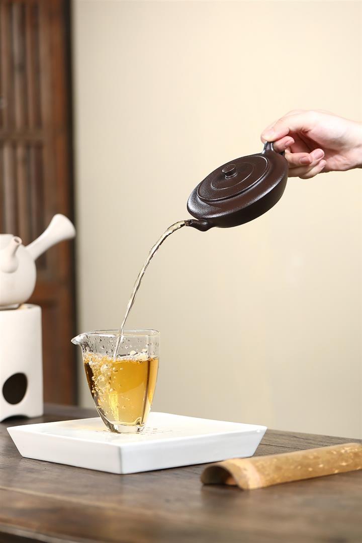 【泥料特點】砂土氣重,似淳實農民,日久使用,漸露鋒芒,養成變化,溫潤莊重。紫砂是壹種雙重氣孔結構的多孔性材質,氣孔微細,密度高。用紫砂壺沏茶,不失原味,且香不渙散,得茶之真香真味。紫砂使用越久,壺身色澤越發光亮照人,氣韻溫雅。紫砂壺長久使用器身會因撫摸擦拭,變得越發溫潤光澤。