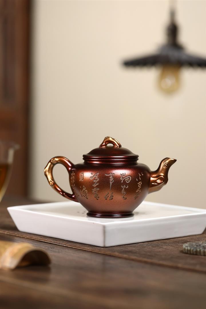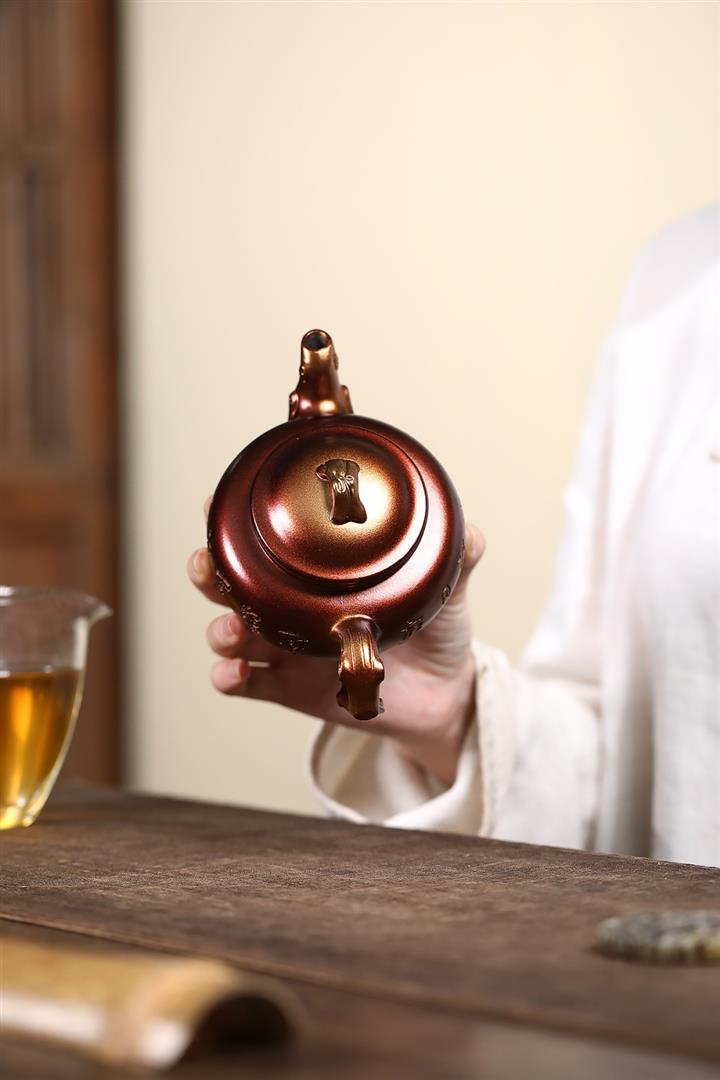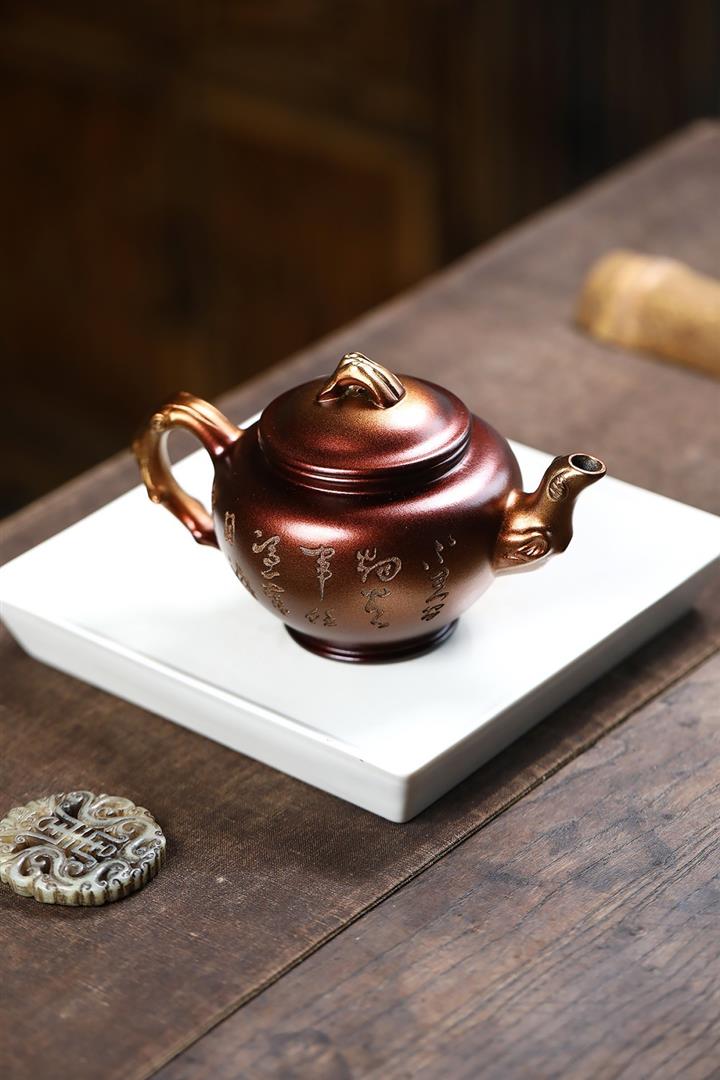 250cc原礦龍血砂貝殼燒金砂龍瓦茶壺POT8480