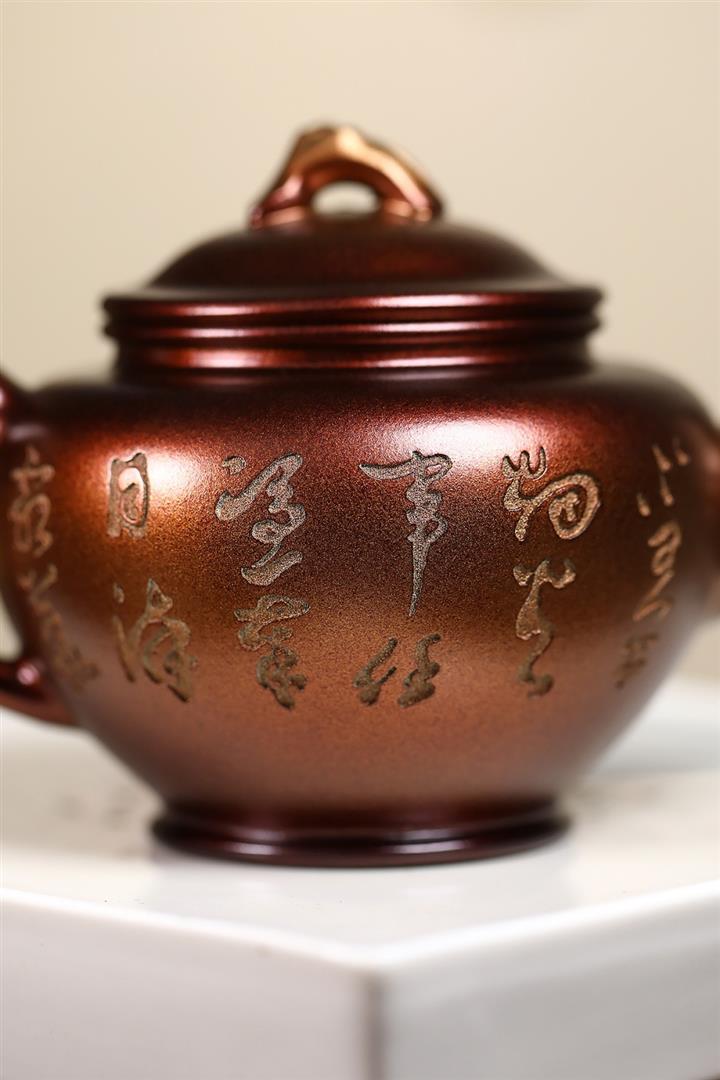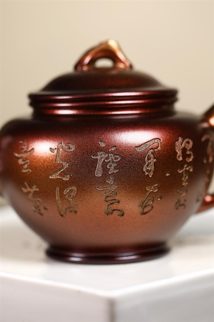 280cc原礦紫泥貝殼燒金砂松趣漢瓦壺POT8479