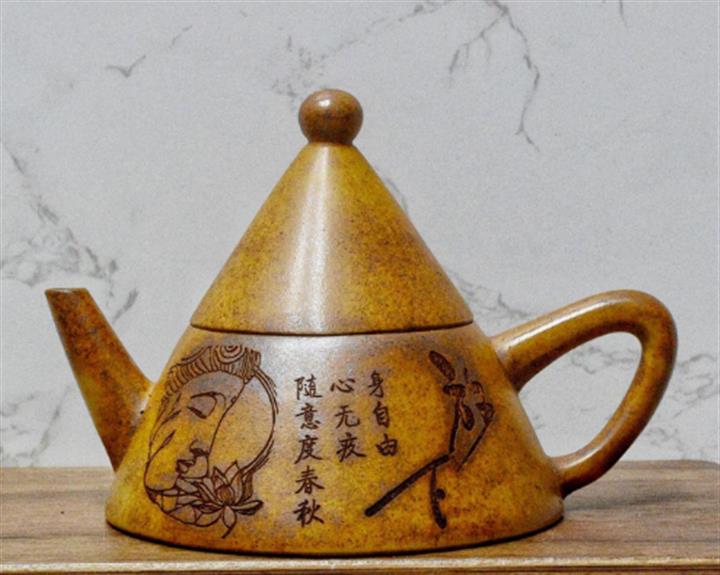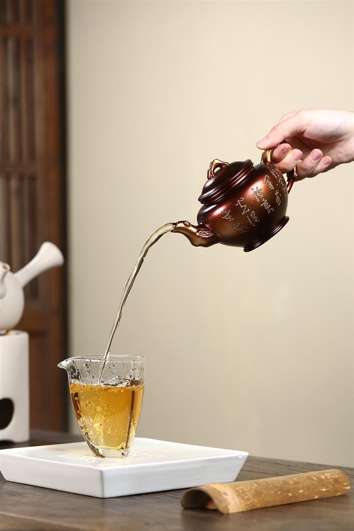 【泥料特點】砂土氣重,似淳實農民,日久使用,漸露鋒芒,養成變化,溫潤莊重。紫砂是壹種雙重氣孔結構的多孔性材質,氣孔微細,密度高。用紫砂壺沏茶,不失原味,且香不渙散,得茶之真香真味。紫砂使用越久,壺身色澤越發光亮照人,氣韻溫雅。紫砂壺長久使用器身會因撫摸擦拭,變得越發溫潤光澤。