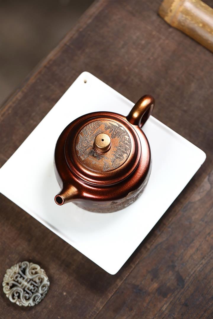 250cc原礦龍血砂貝殼燒金砂龍瓦茶壺POT8480