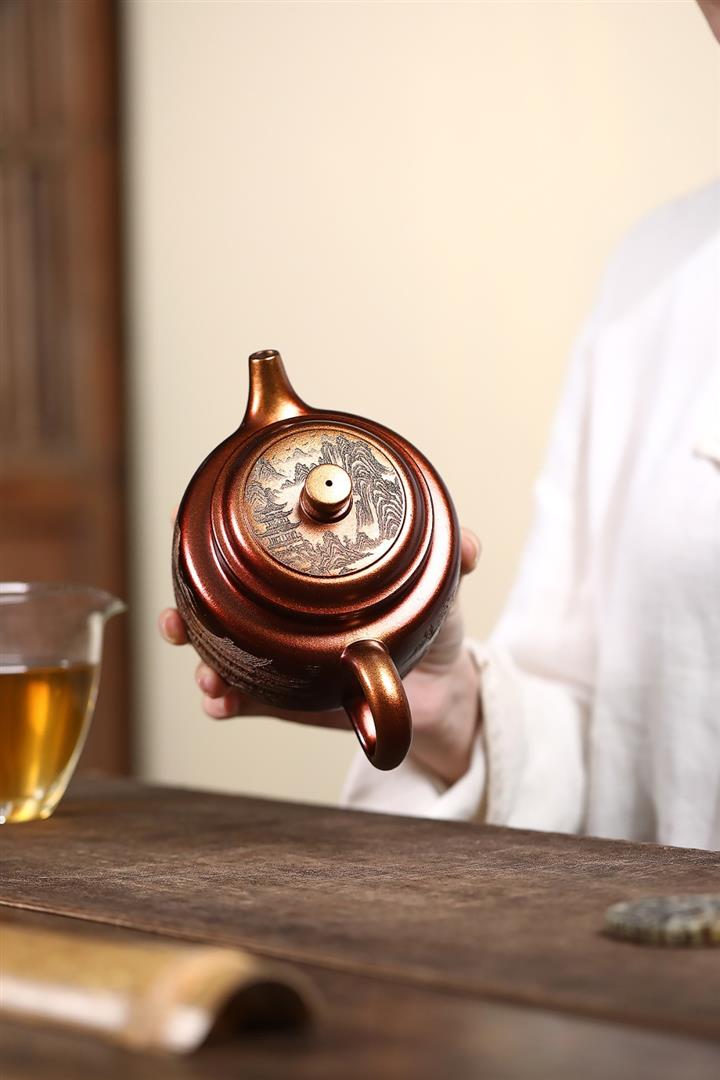 340cc原礦紫泥刻繪山水仿古茶壺POT8482