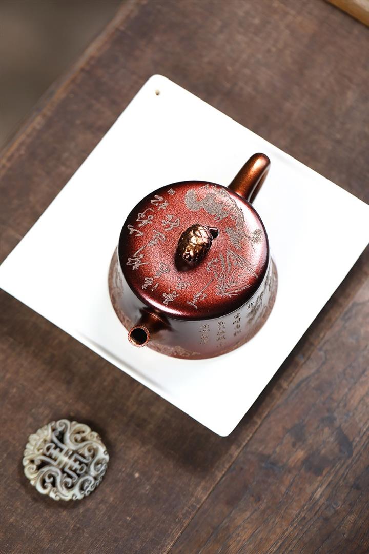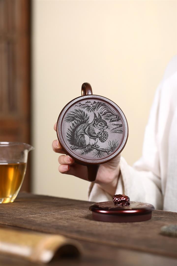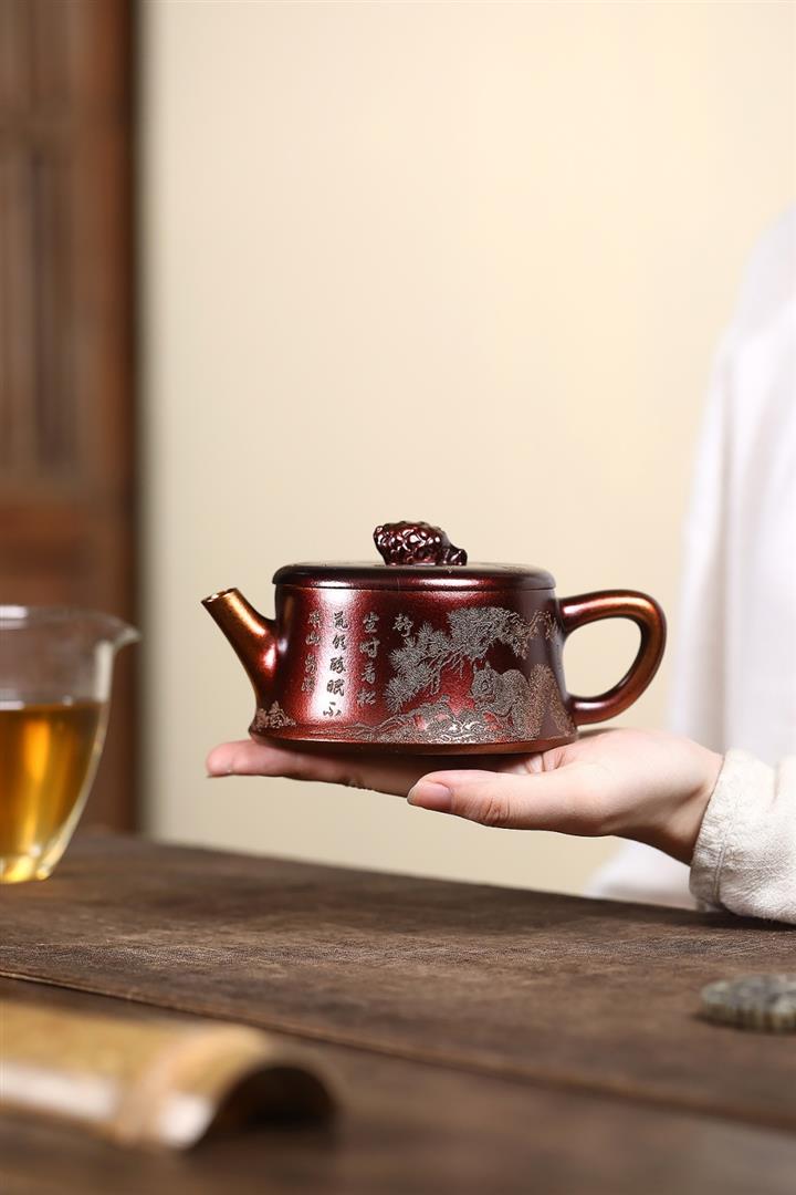 340cc原礦紫泥刻繪山水仿古茶壺POT8482