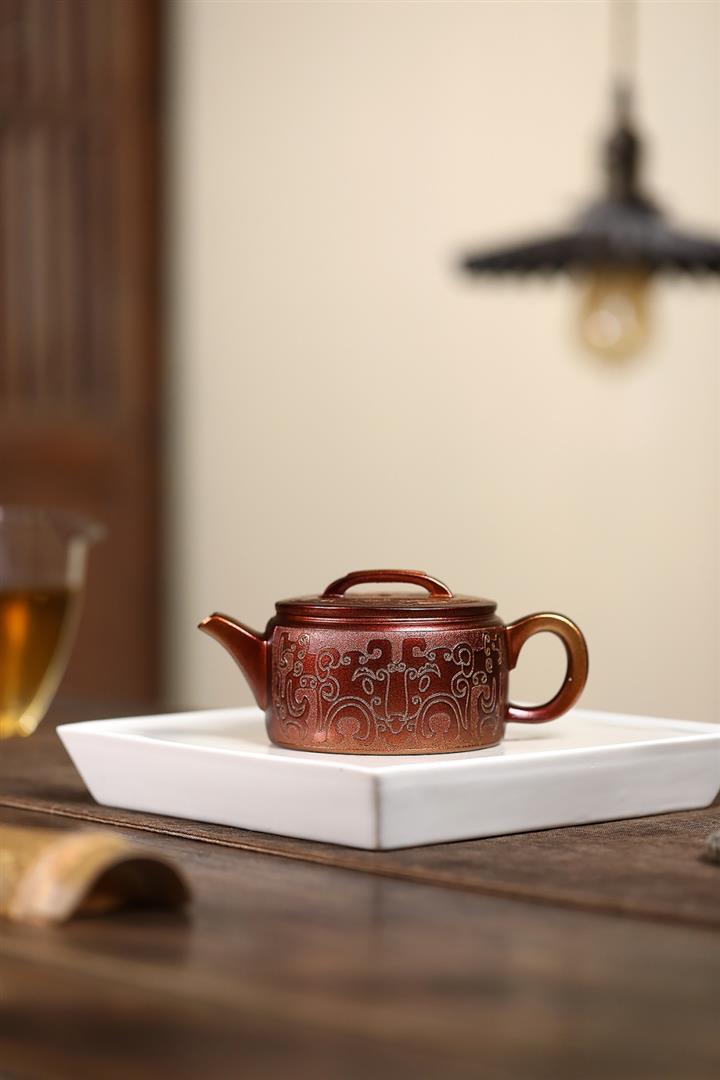 250cc原礦龍血砂貝殼燒金砂龍瓦茶壺POT8480