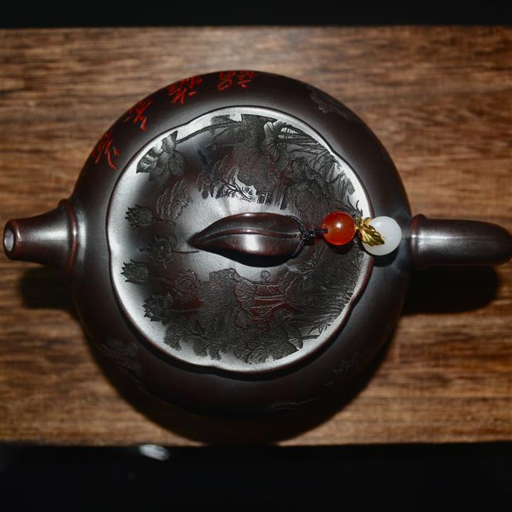 340cc原礦紫泥刻繪山水仿古茶壺POT8482