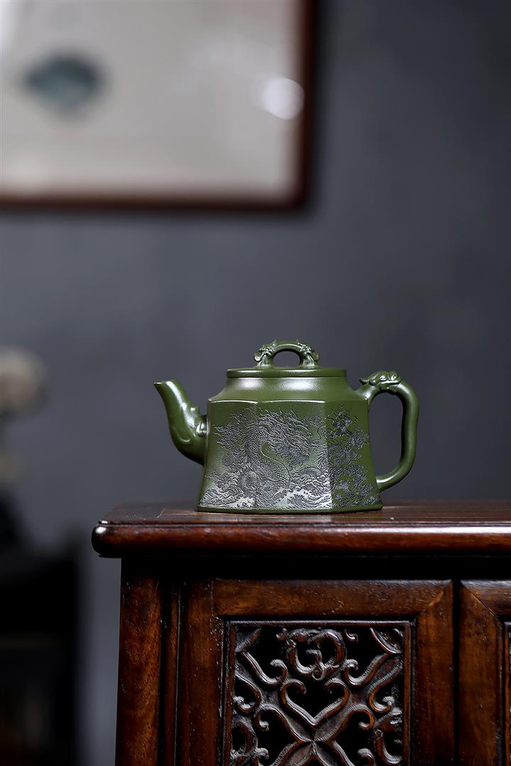 350cc原礦民國綠泥八方龍權泡茶壺POT8484