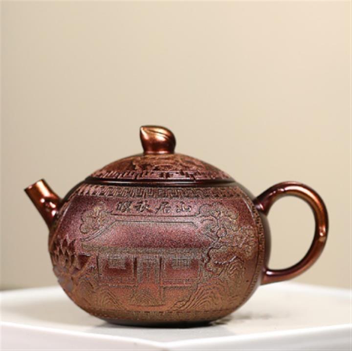 330cc原礦貝殼燒馬到成功如意漢瓦茶壺POT8489
