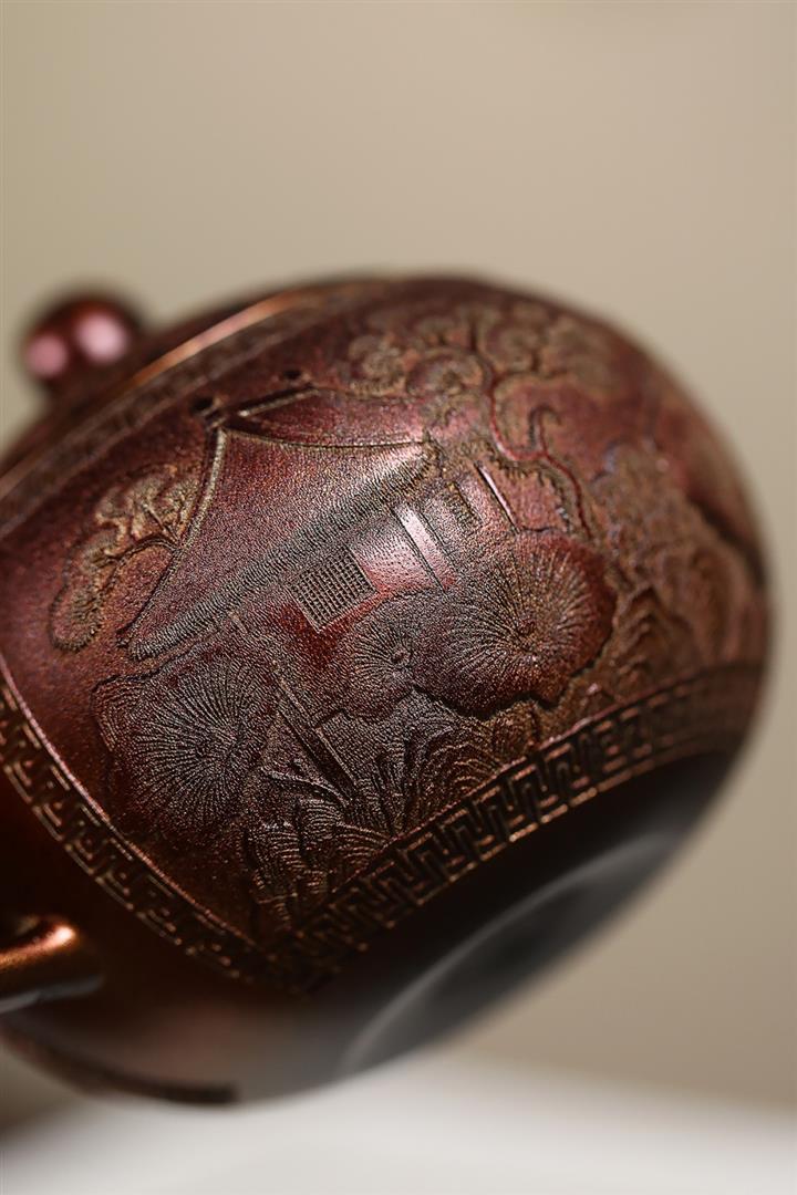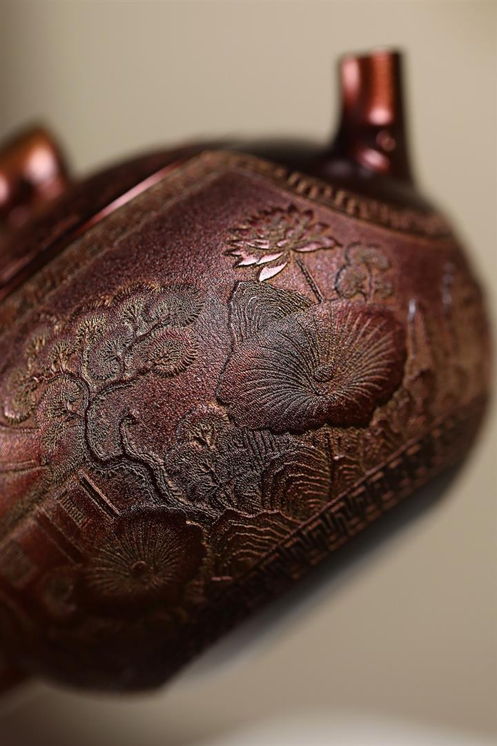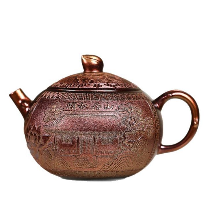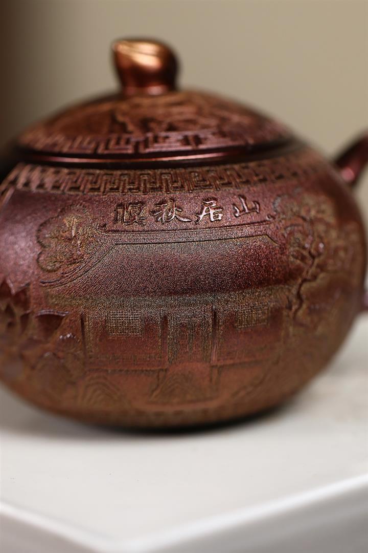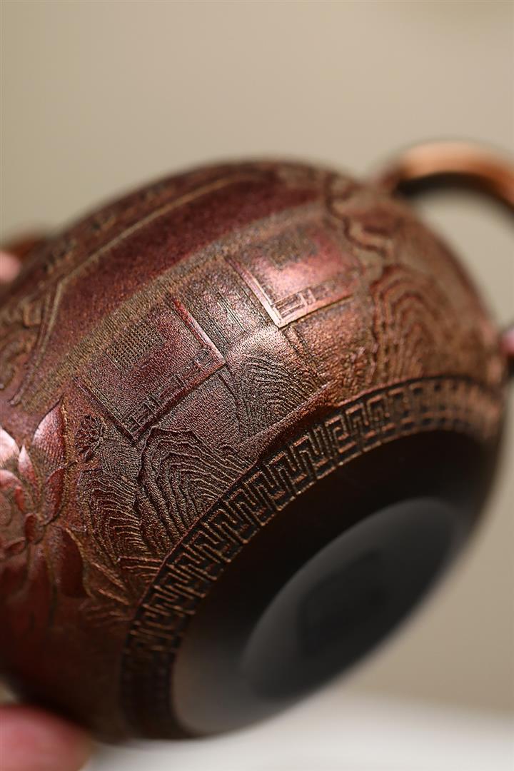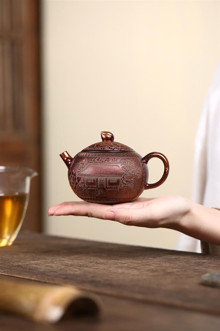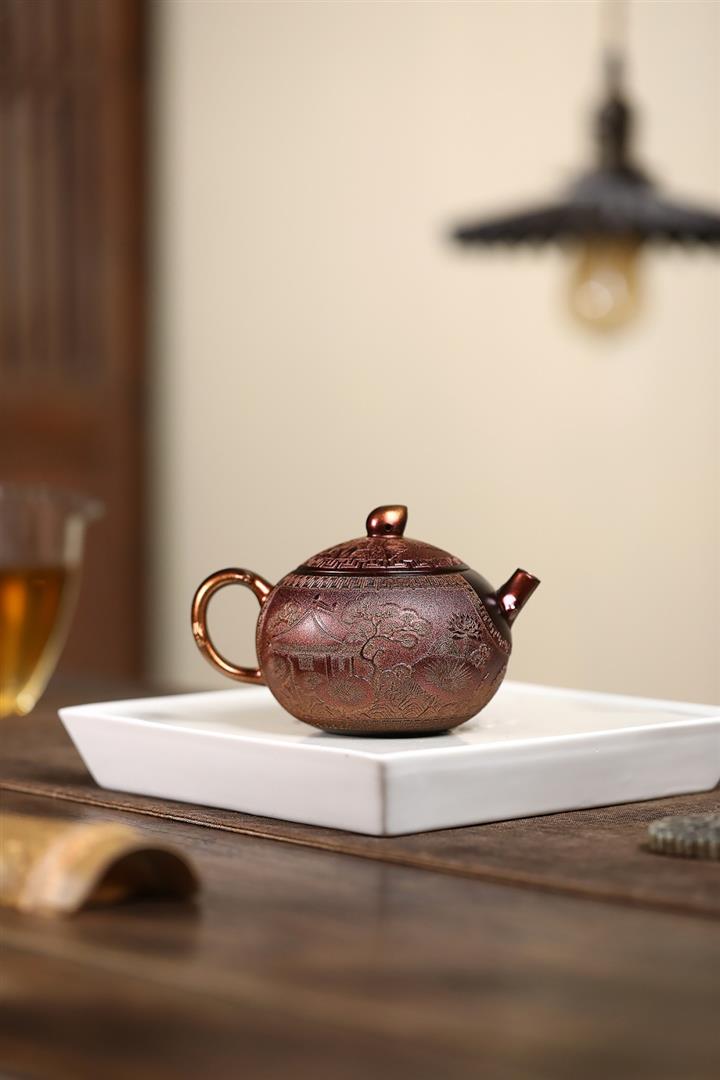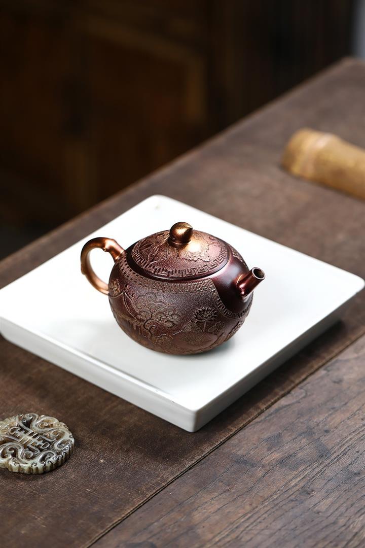220cc原礦綠泥刻繪荷趣明爐茶壺POT8498