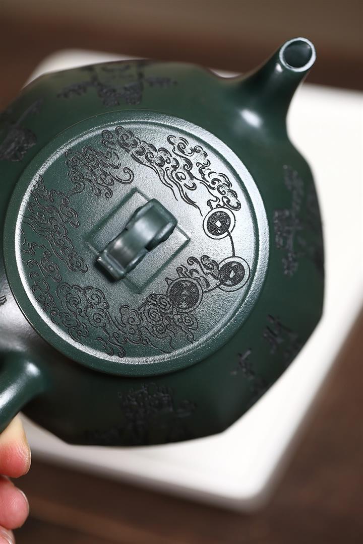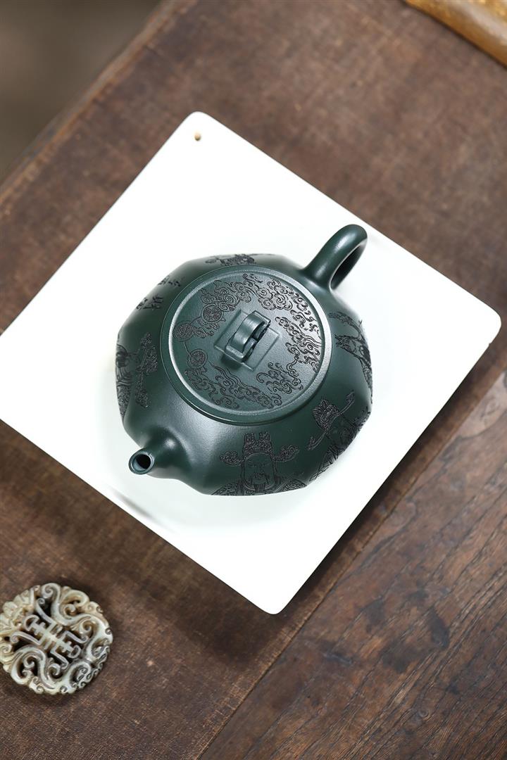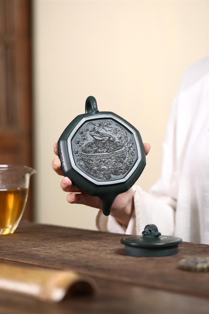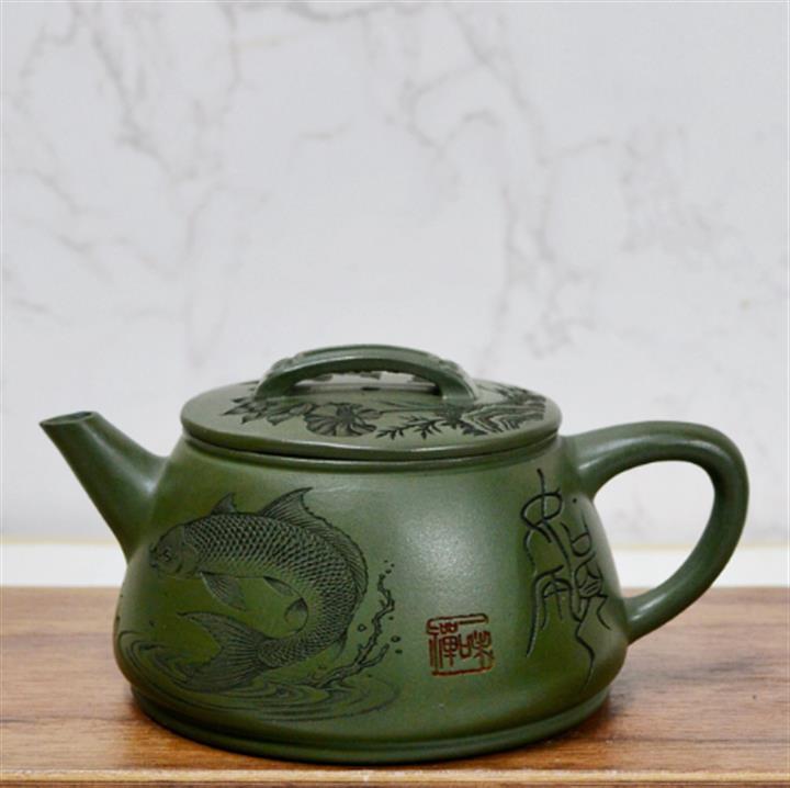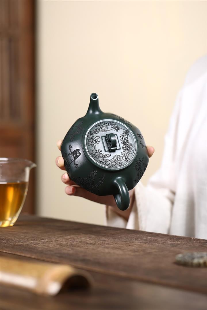 220cc原礦綠泥刻繪荷趣明爐茶壺POT8498