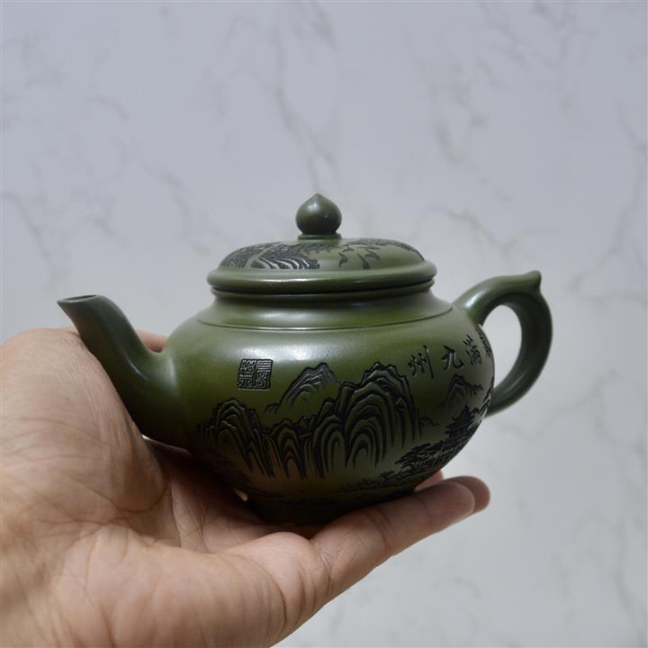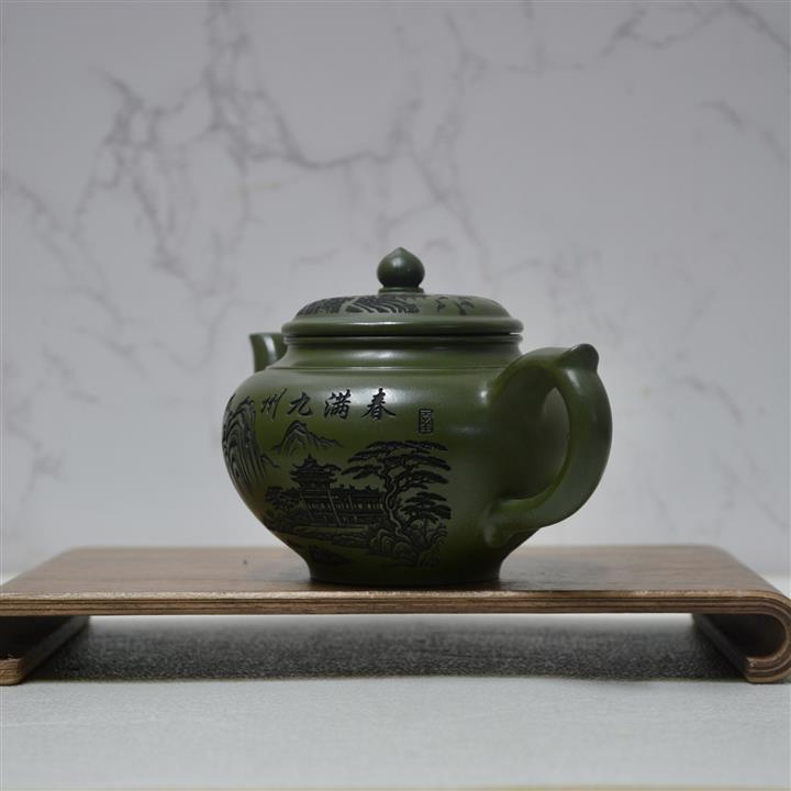 250cc原礦綠泥山水獨占鰲頭泡茶壺POT8511