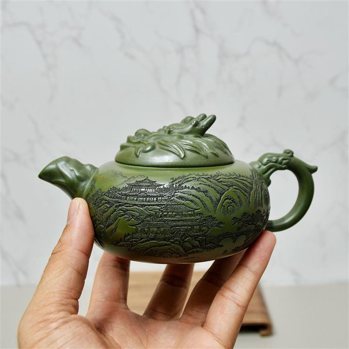 250cc原礦綠泥山水獨占鰲頭泡茶壺POT8511