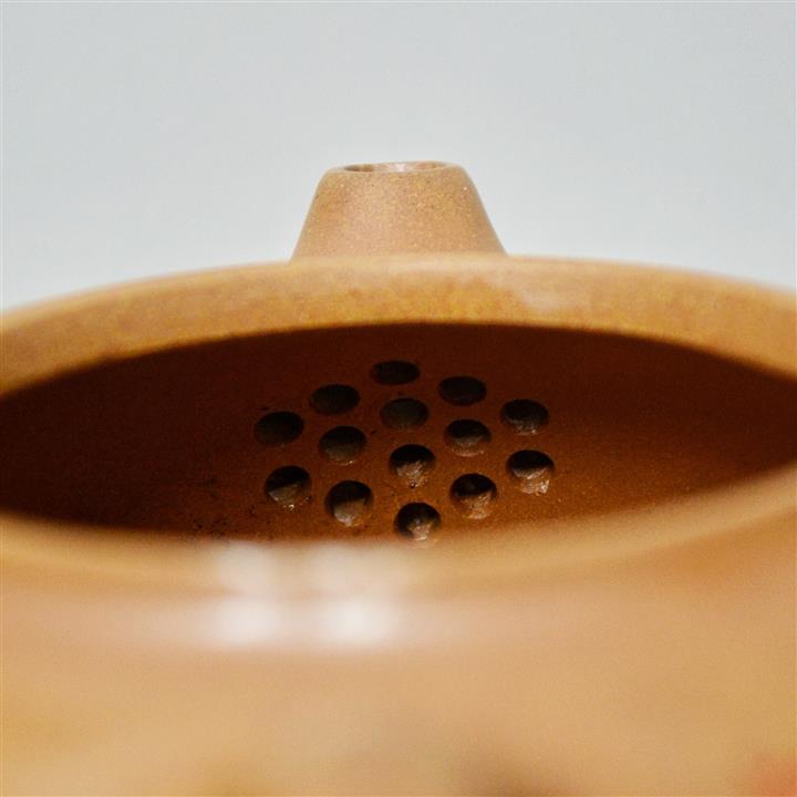 【泥料特點】砂土氣重,似淳實農民,日久使用,漸露鋒芒,養成變化,溫潤莊重。紫砂是壹種雙重氣孔結構的多孔性材質,氣孔微細,密度高。用紫砂壺沏茶,不失原味,且香不渙散,得茶之真香真味。紫砂使用越久,壺身色澤越發光亮照人,氣韻溫雅。紫砂壺長久使用器身會因撫摸擦拭,變得越發溫潤光澤。
