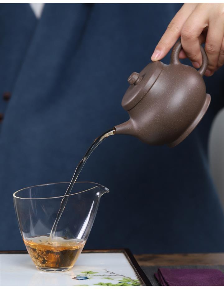 【泥料特點】砂土氣重,似淳實農民,日久使用,漸露鋒芒,養成變化,溫潤莊重。紫砂是壹種雙重氣孔結構的多孔性材質,氣孔微細,密度高。用紫砂壺沏茶,不失原味,且香不渙散,得茶之真香真味。紫砂使用越久,壺身色澤越發光亮照人,氣韻溫雅。紫砂壺長久使用器身會因撫摸擦拭,變得越發溫潤光澤。