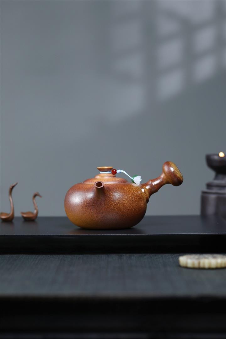 350cc原礦黃金段泥柴燒浴火素潘茶壺POT8529
