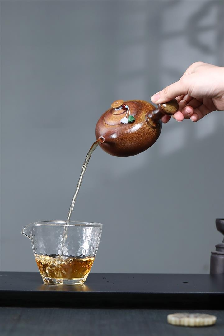 【泥料特點】砂土氣重,似淳實農民,日久使用,漸露鋒芒,養成變化,溫潤莊重。紫砂是壹種雙重氣孔結構的多孔性材質,氣孔微細,密度高。用紫砂壺沏茶,不失原味,且香不渙散,得茶之真香真味。紫砂使用越久,壺身色澤越發光亮照人,氣韻溫雅。紫砂壺長久使用器身會因撫摸擦拭,變得越發溫潤光澤。
