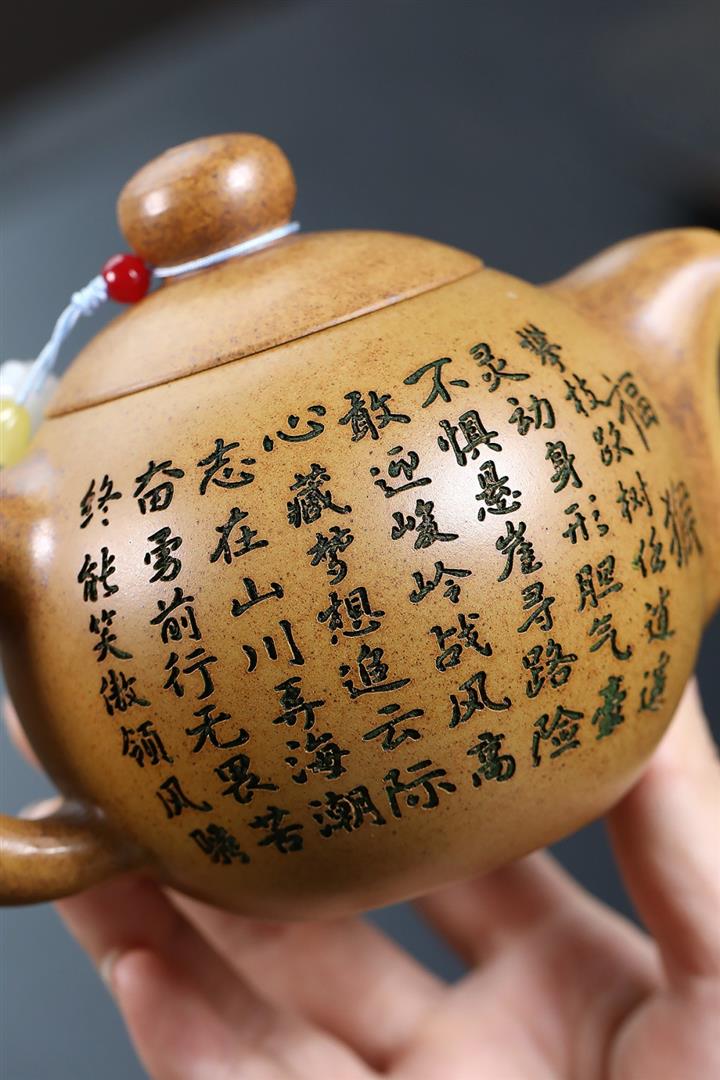 【作品介紹】此款壺形線條流暢,壺把,壺嘴,壺身壹氣呵成栩栩如生,是收藏把玩的好壺,泥料色澤古樸典雅,日久使用,漸露鋒芒,養成變化快,溫潤莊重,用其泡茶,使用的年代久,壺身就溫潤,泡出來的茶湯也就醇郁芳馨。