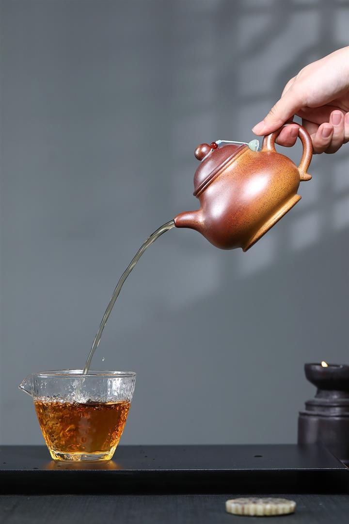 【泥料特點】砂土氣重,似淳實農民,日久使用,漸露鋒芒,養成變化,溫潤莊重。紫砂是壹種雙重氣孔結構的多孔性材質,氣孔微細,密度高。用紫砂壺沏茶,不失原味,且香不渙散,得茶之真香真味。紫砂使用越久,壺身色澤越發光亮照人,氣韻溫雅。紫砂壺長久使用器身會因撫摸擦拭,變得越發溫潤光澤。