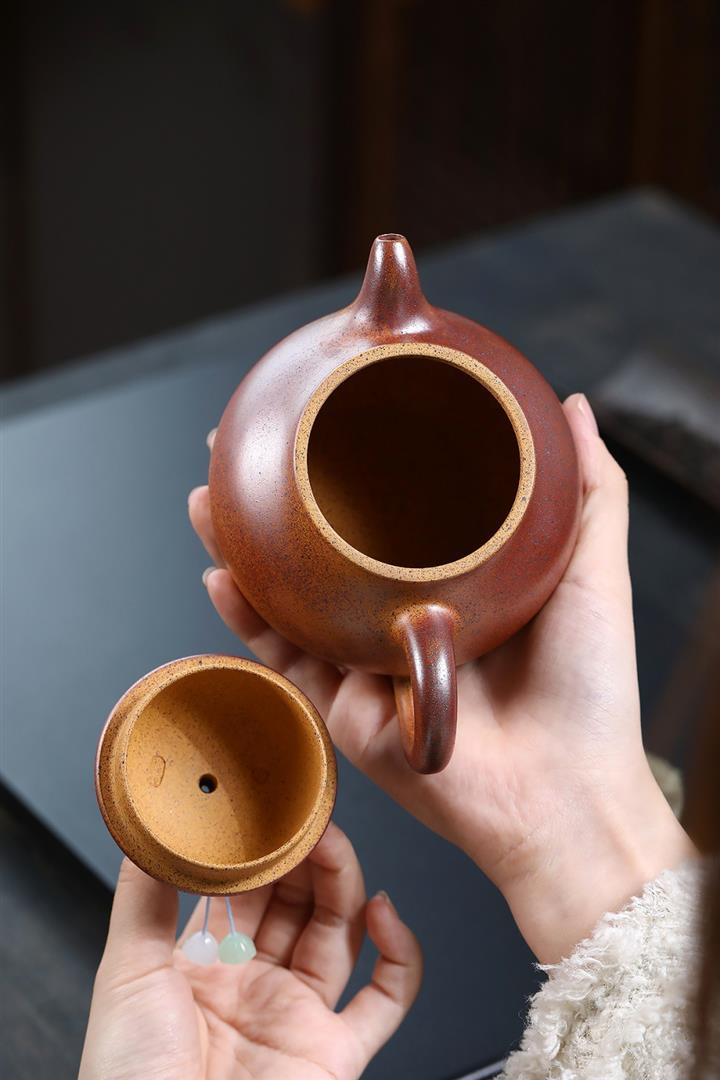 【作品介紹】此款壺形線條流暢,壺把,壺嘴,壺身壹氣呵成栩栩如生,是收藏把玩的好壺,泥料色澤古樸典雅,日久使用,漸露鋒芒,養成變化快,溫潤莊重,用其泡茶,使用的年代久,壺身就溫潤,泡出來的茶湯也就醇郁芳馨。
