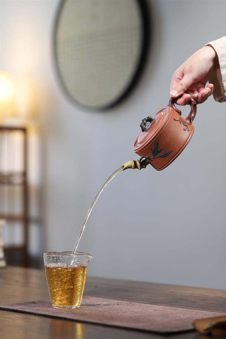 【作品介紹】此款壺形線條流暢,壺把,壺嘴,壺身壹氣呵成栩栩如生,是收藏把玩的好壺,泥料色澤古樸典雅,日久使用,漸露鋒芒,養成變化快,溫潤莊重,用其泡茶,使用的年代久,壺身就溫潤,泡出來的茶湯也就醇郁芳馨。
