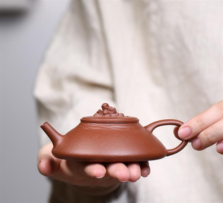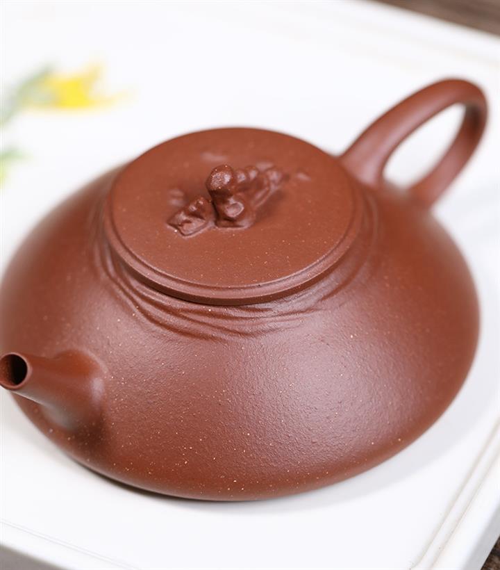 【泥料特點】砂土氣重,似淳實農民,日久使用,漸露鋒芒,養成變化,溫潤莊重。紫砂是壹種雙重氣孔結構的多孔性材質,氣孔微細,密度高。用紫砂壺沏茶,不失原味,且香不渙散,得茶之真香真味。紫砂使用越久,壺身色澤越發光亮照人,氣韻溫雅。紫砂壺長久使用器身會因撫摸擦拭,變得越發溫潤光澤。