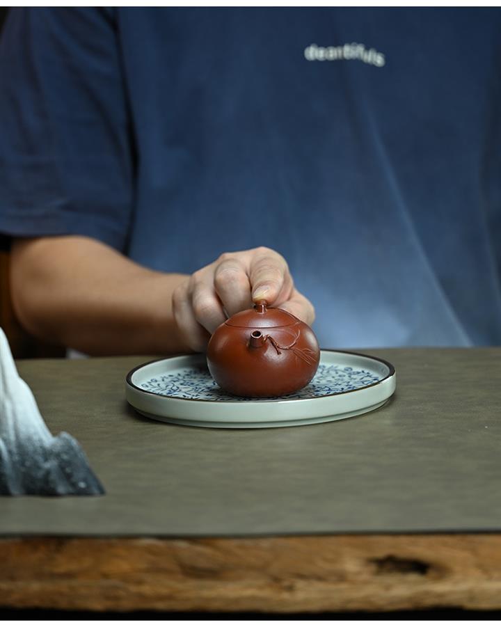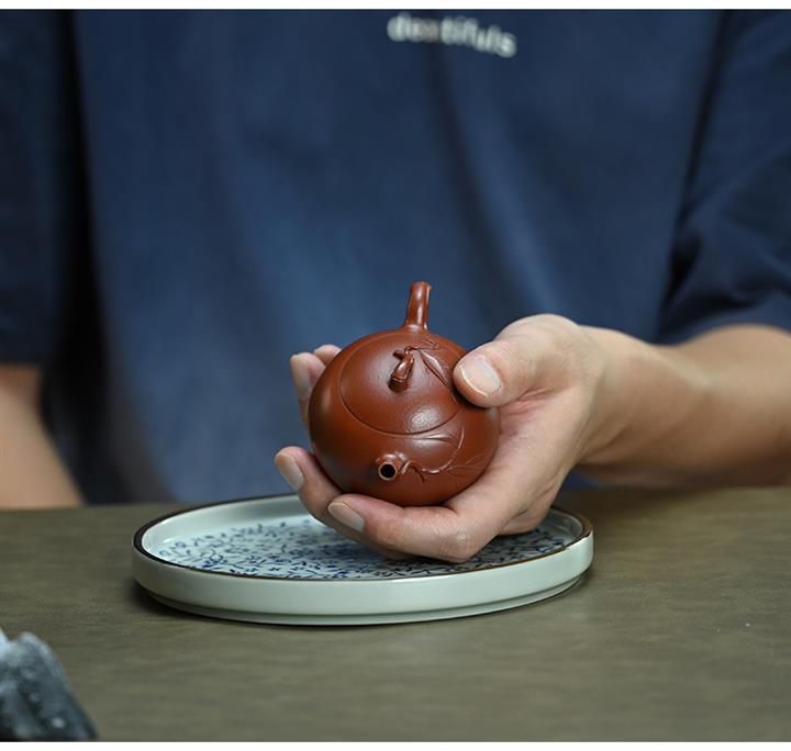 【泥料特點】砂土氣重,似淳實農民,日久使用,漸露鋒芒,養成變化,溫潤莊重。紫砂是壹種雙重氣孔結構的多孔性材質,氣孔微細,密度高。用紫砂壺沏茶,不失原味,且香不渙散,得茶之真香真味。紫砂使用越久,壺身色澤越發光亮照人,氣韻溫雅。紫砂壺長久使用器身會因撫摸擦拭,變得越發溫潤光澤。