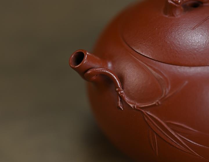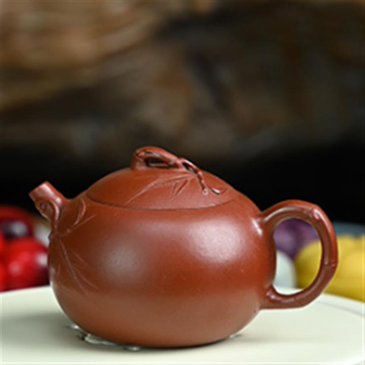 150cc原礦朱泥純手工竹葉小西施茶壺POT8539