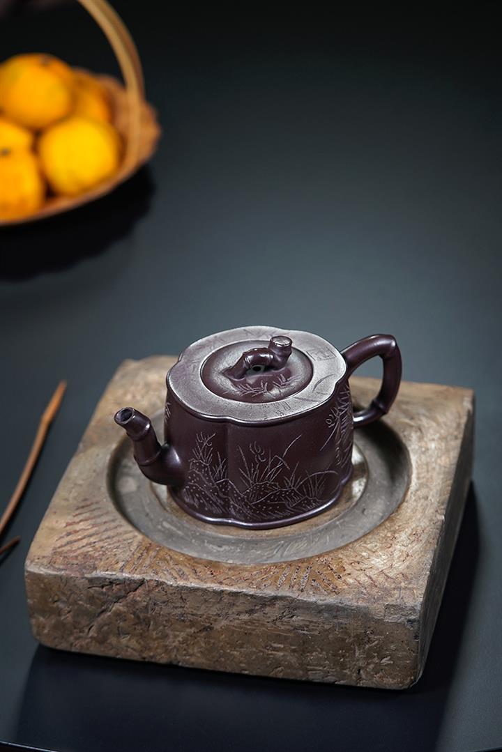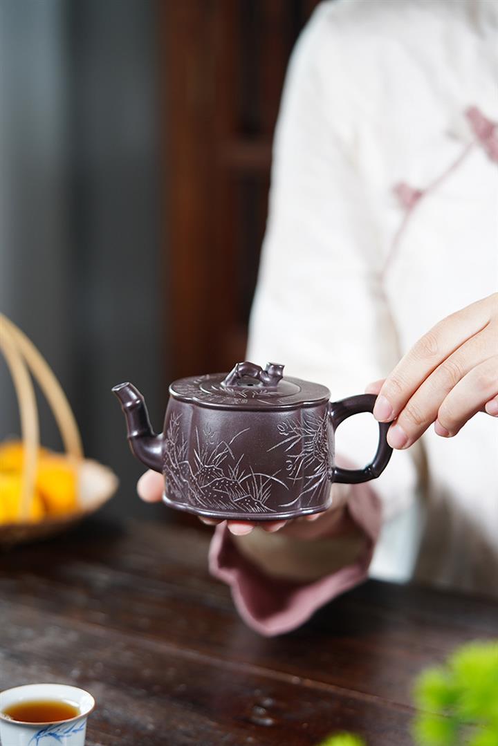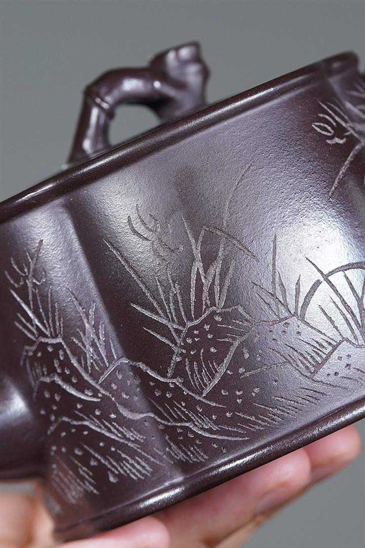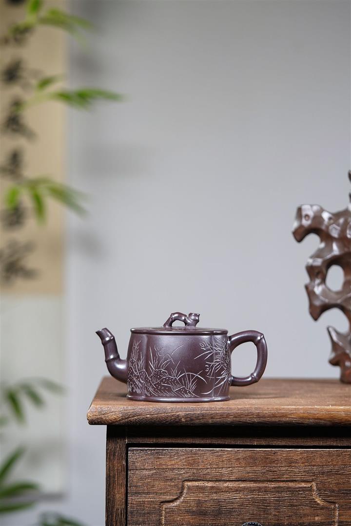 230cc原礦老紫泥蘭竹雙清茶壺POT8540