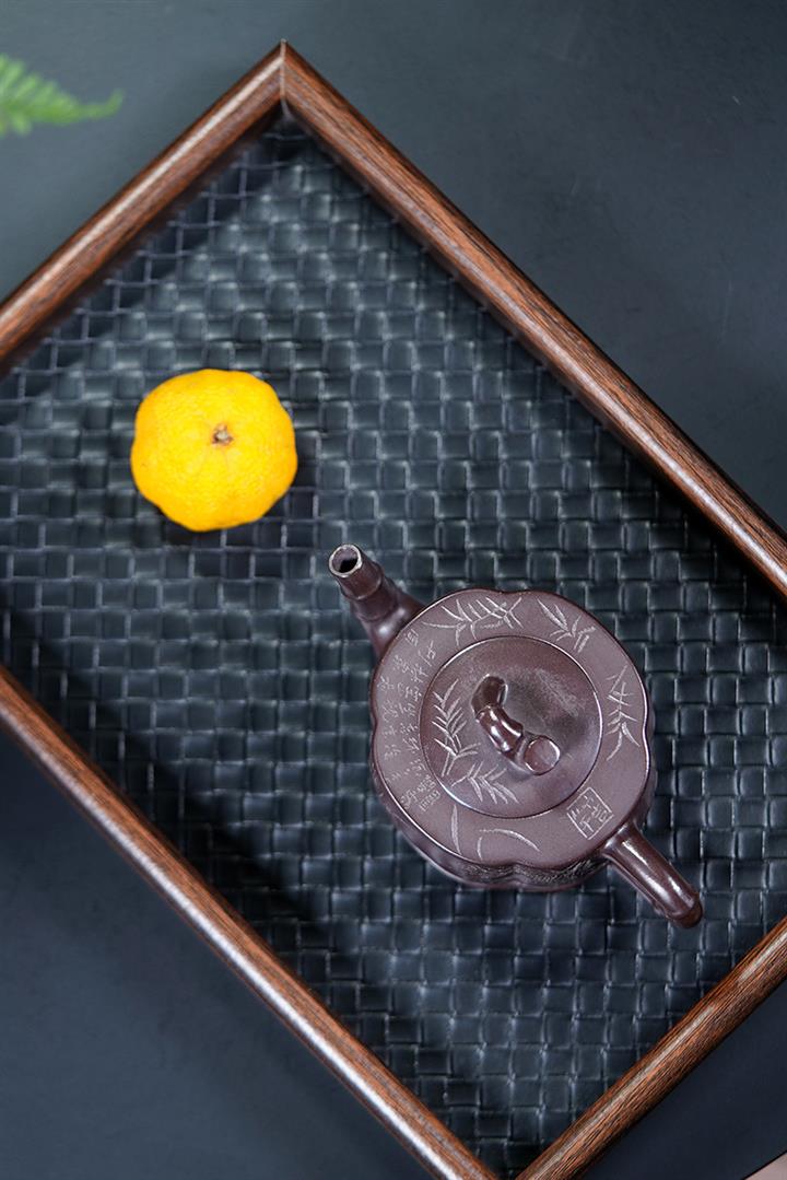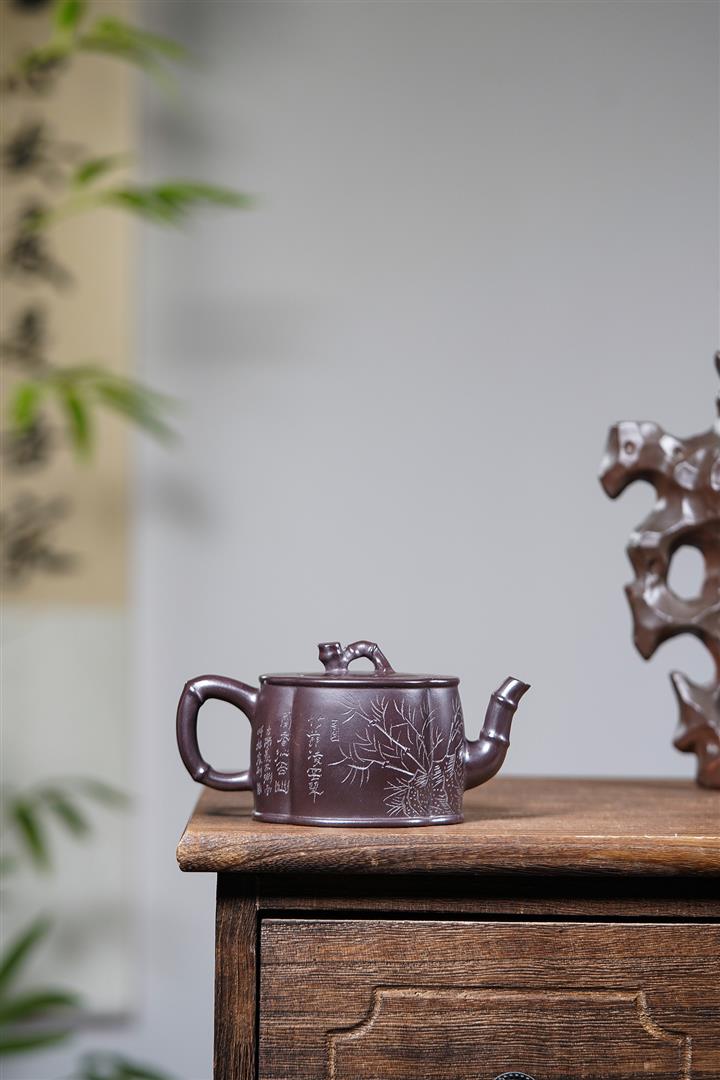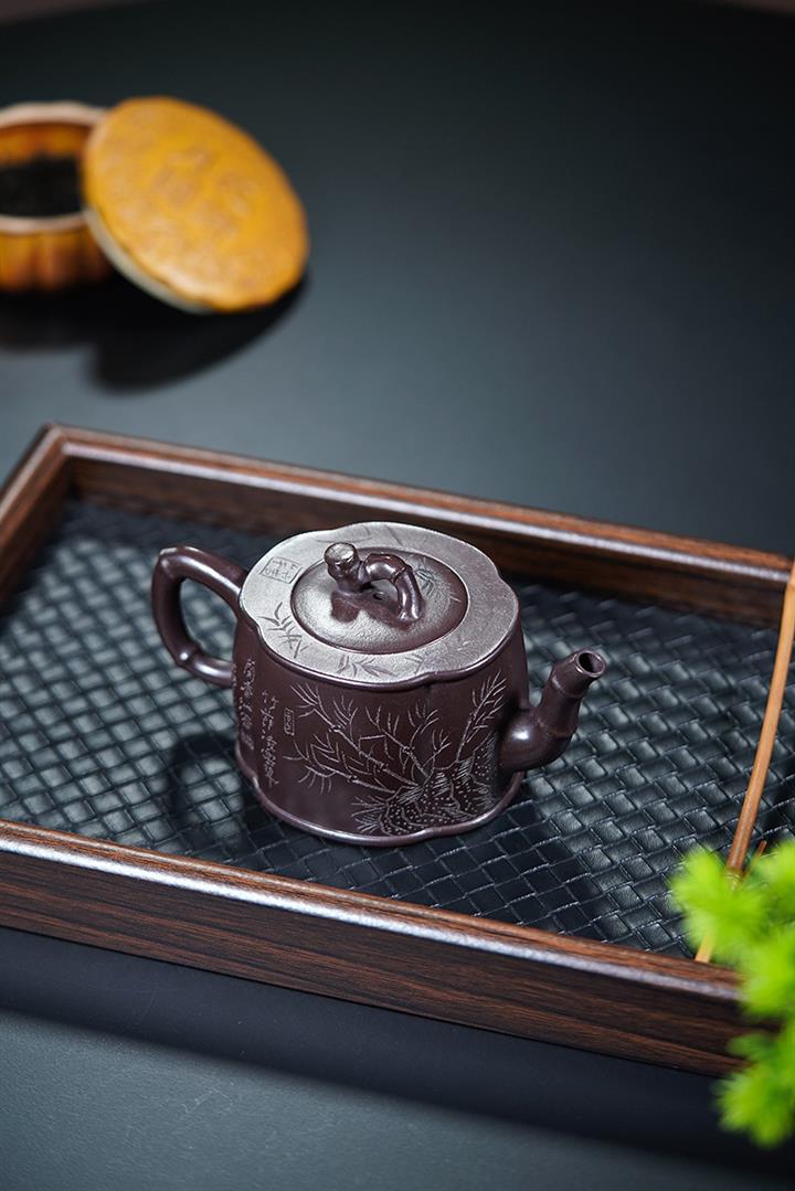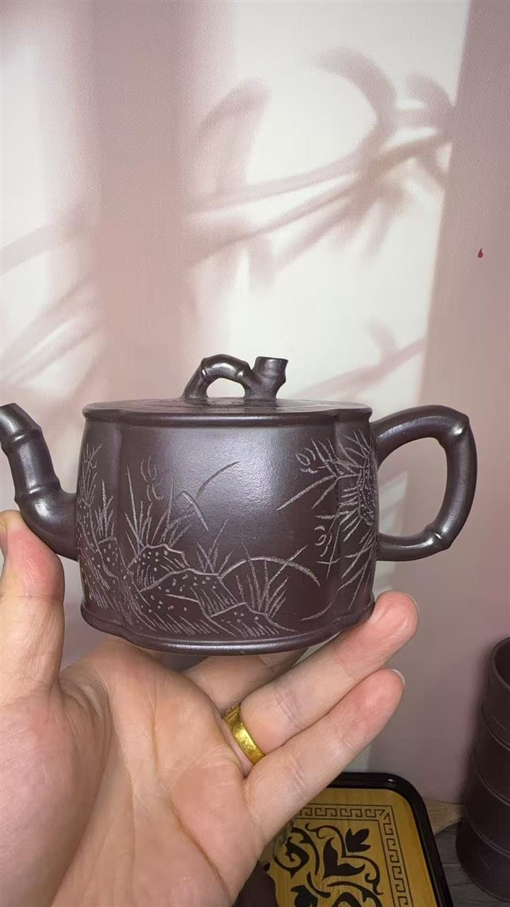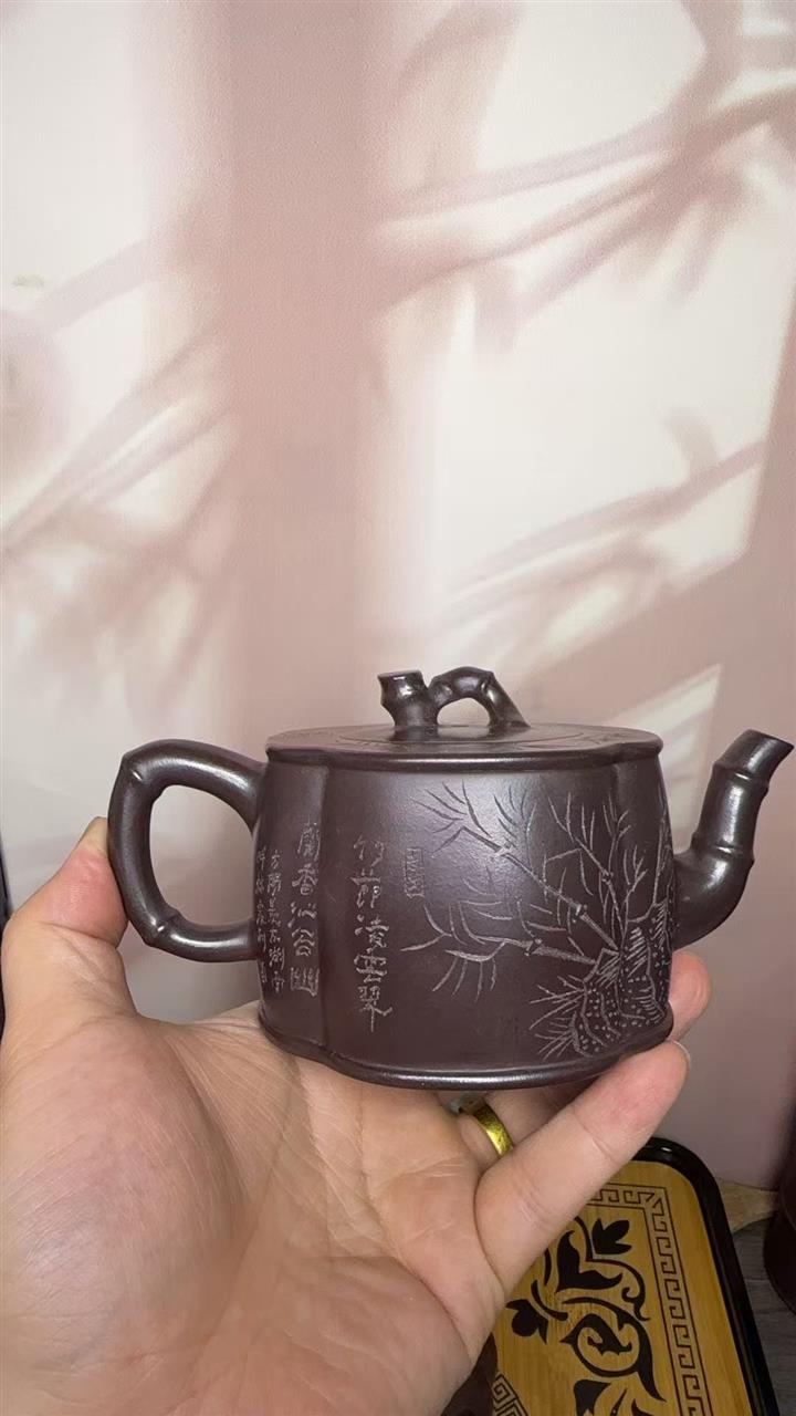 170cc原礦老紫泥竹報平安包漿茶壺POT8544