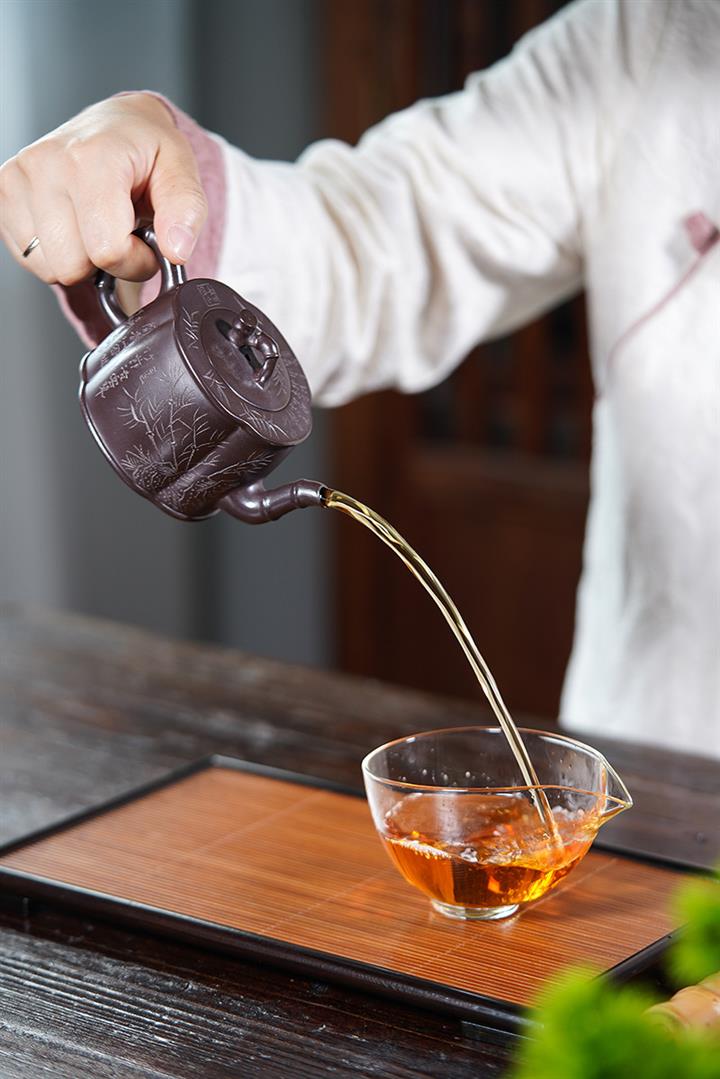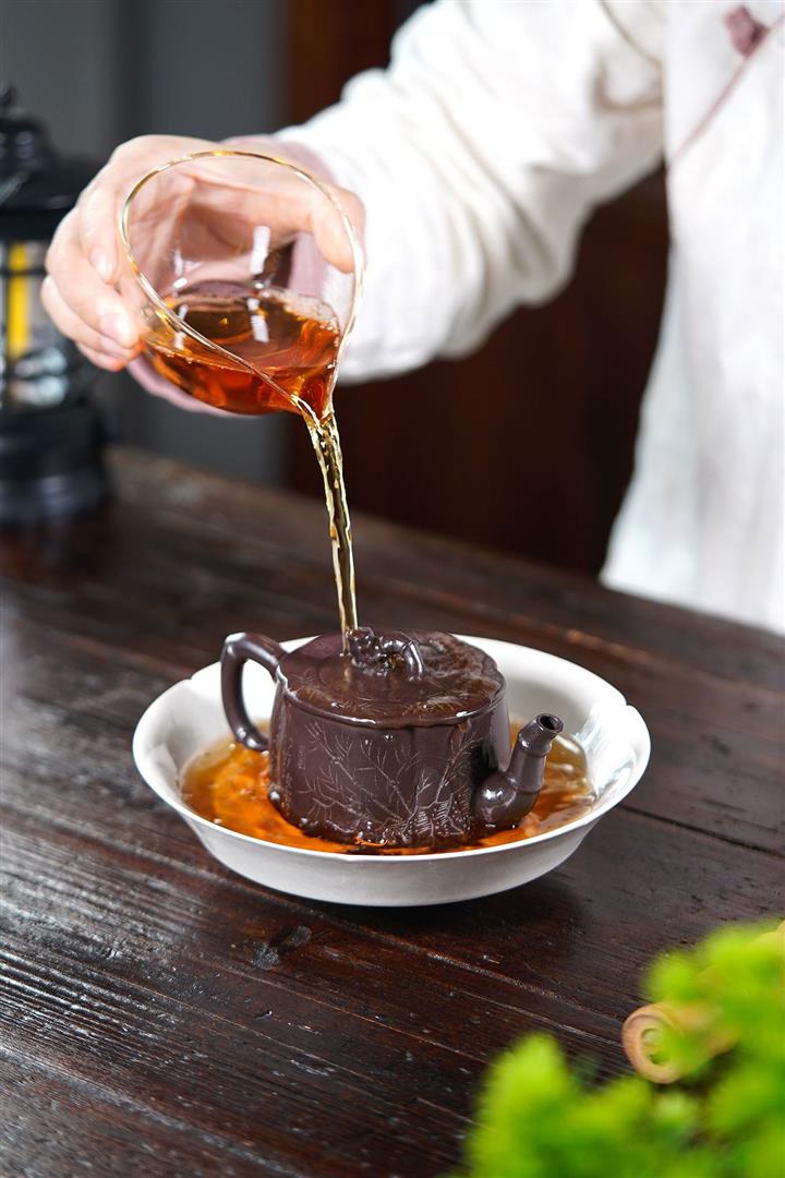 【泥料特點】砂土氣重,似淳實農民,日久使用,漸露鋒芒,養成變化,溫潤莊重。紫砂是壹種雙重氣孔結構的多孔性材質,氣孔微細,密度高。用紫砂壺沏茶,不失原味,且香不渙散,得茶之真香真味。紫砂使用越久,壺身色澤越發光亮照人,氣韻溫雅。紫砂壺長久使用器身會因撫摸擦拭,變得越發溫潤光澤。