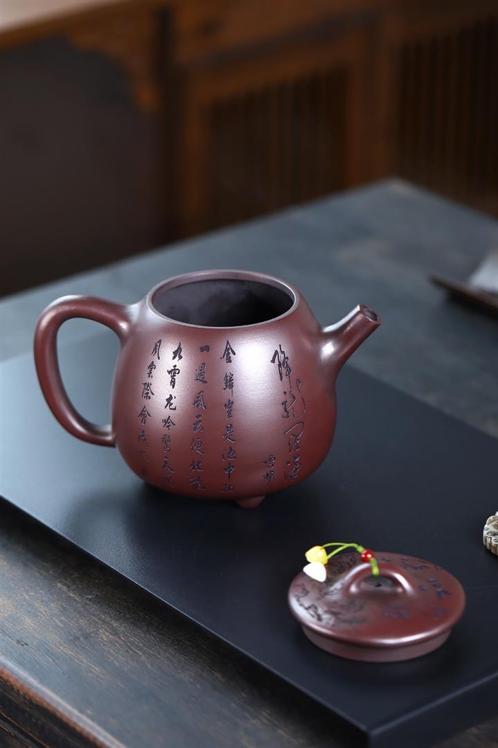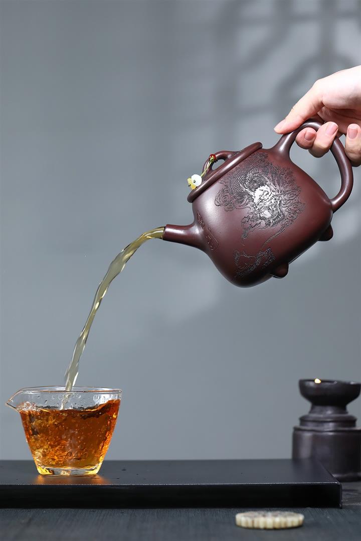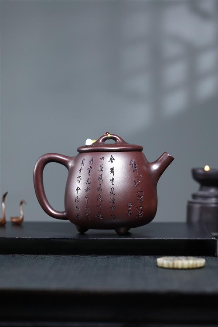 【泥料特點】砂土氣重,似淳實農民,日久使用,漸露鋒芒,養成變化,溫潤莊重。紫砂是壹種雙重氣孔結構的多孔性材質,氣孔微細,密度高。用紫砂壺沏茶,不失原味,且香不渙散,得茶之真香真味。紫砂使用越久,壺身色澤越發光亮照人,氣韻溫雅。紫砂壺長久使用器身會因撫摸擦拭,變得越發溫潤光澤。